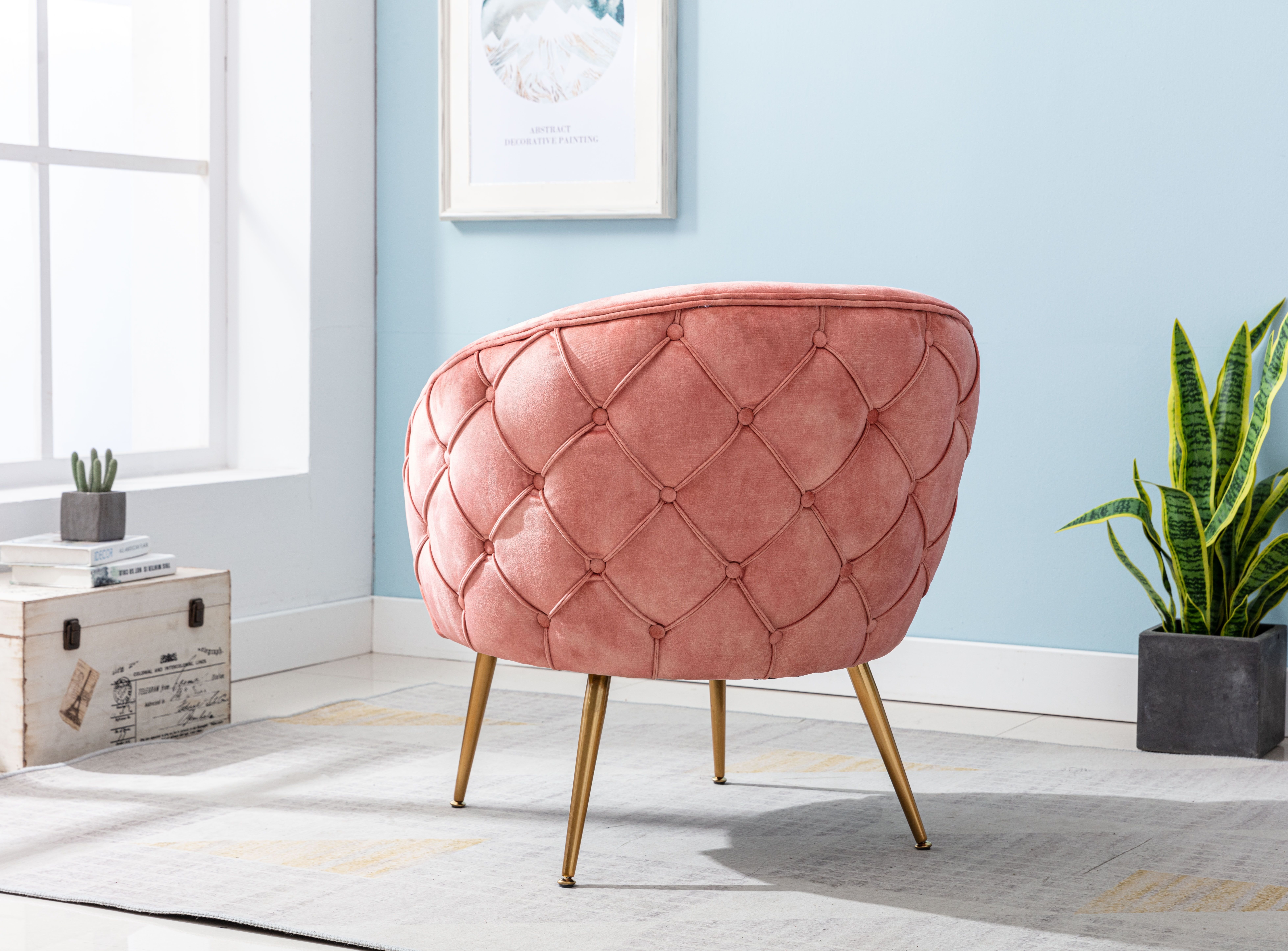 Home > Gorgeous Living Room Accent Chair 1pc Button-Tufted Back Covering Rose Color Velvet Upholstered Metal Legs