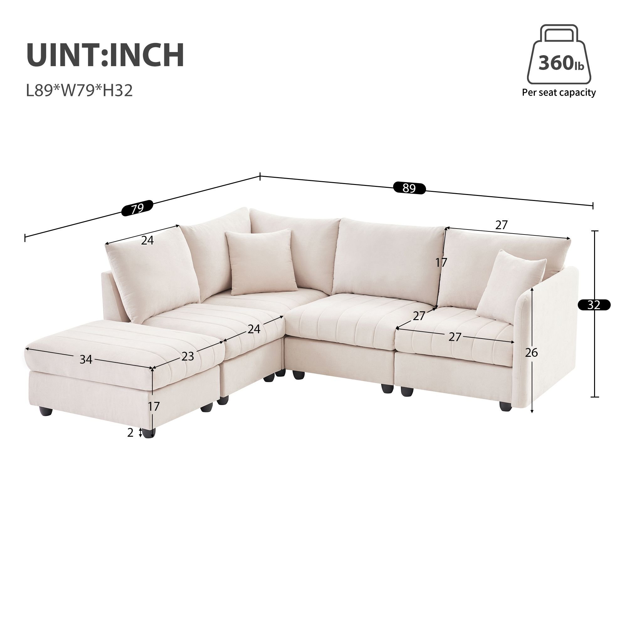 Convertible Ottoman: You can put the convertible ottoman anywhere so that the sofa will have more possibilities and fun. You can set as many positions and shapes as you like.