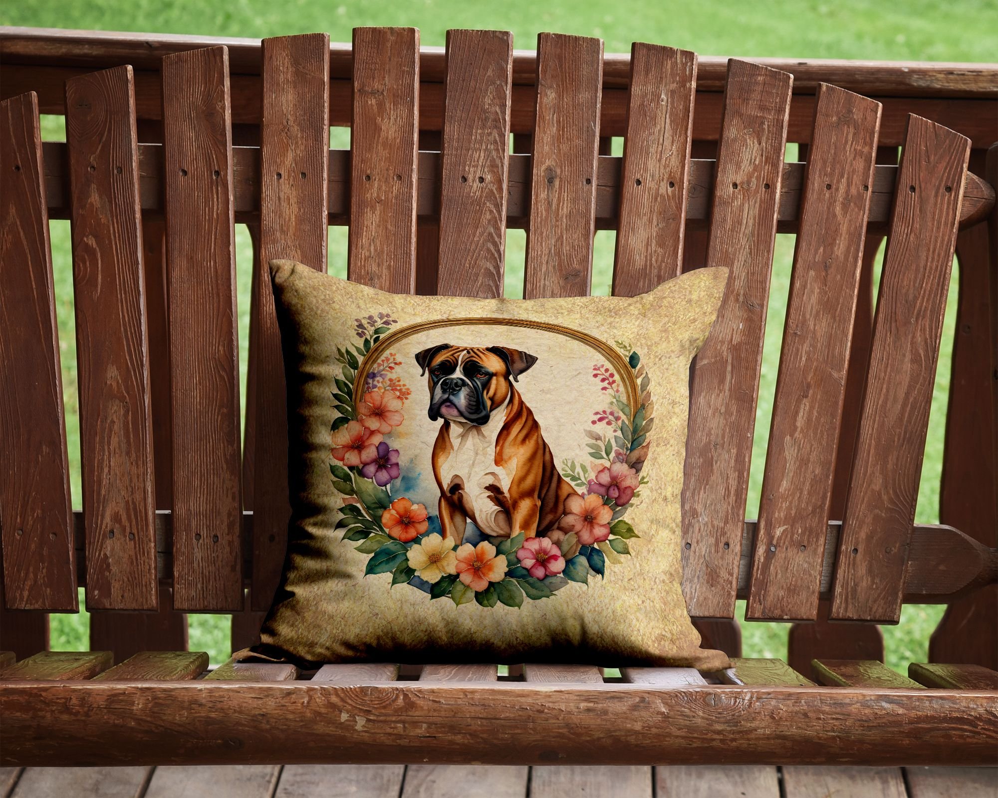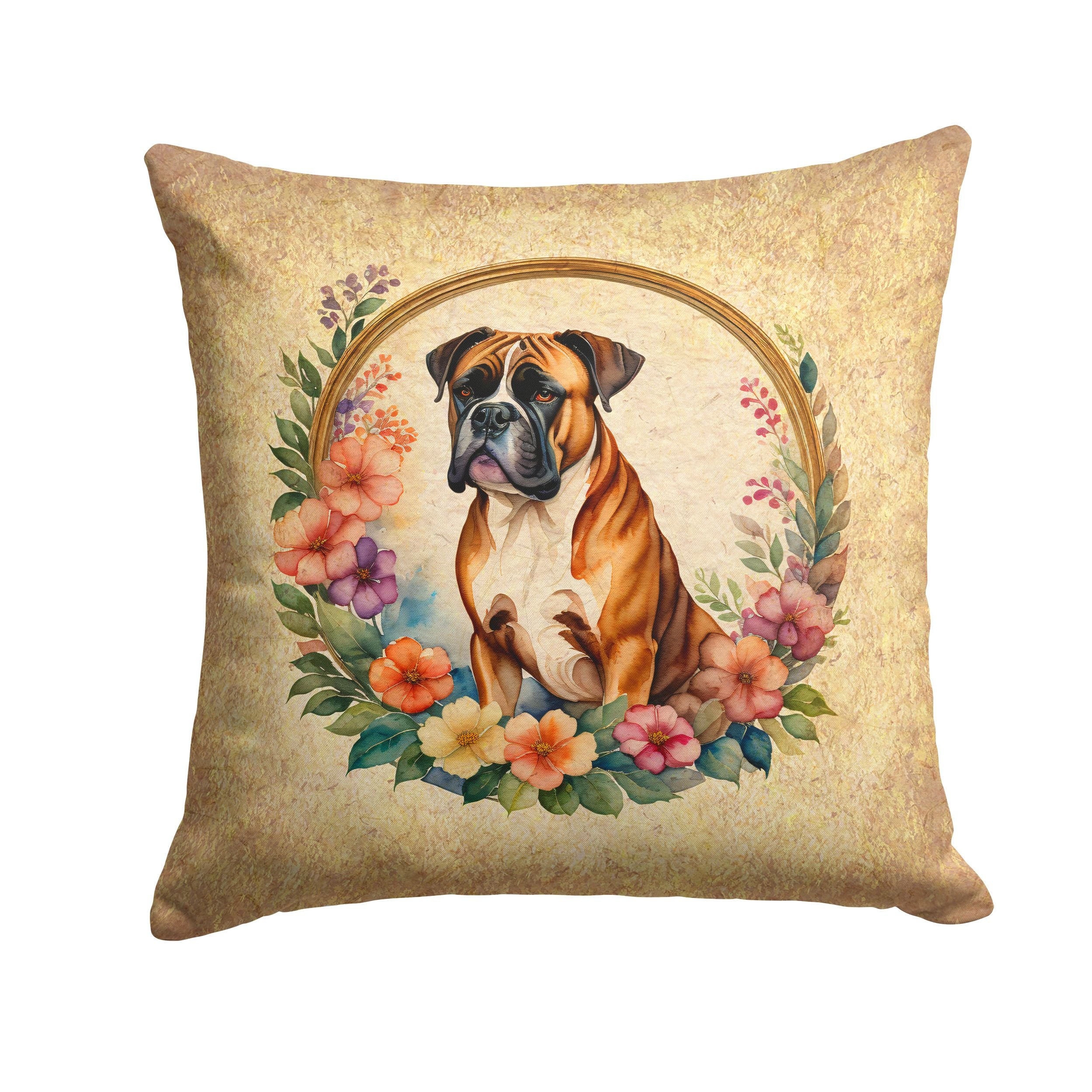 Home > Boxer and Flowers Throw Pillow Machine Washable, Indoor Outdoor Decorative Pillow for Couch, Bed or Patio, 14Hx14W