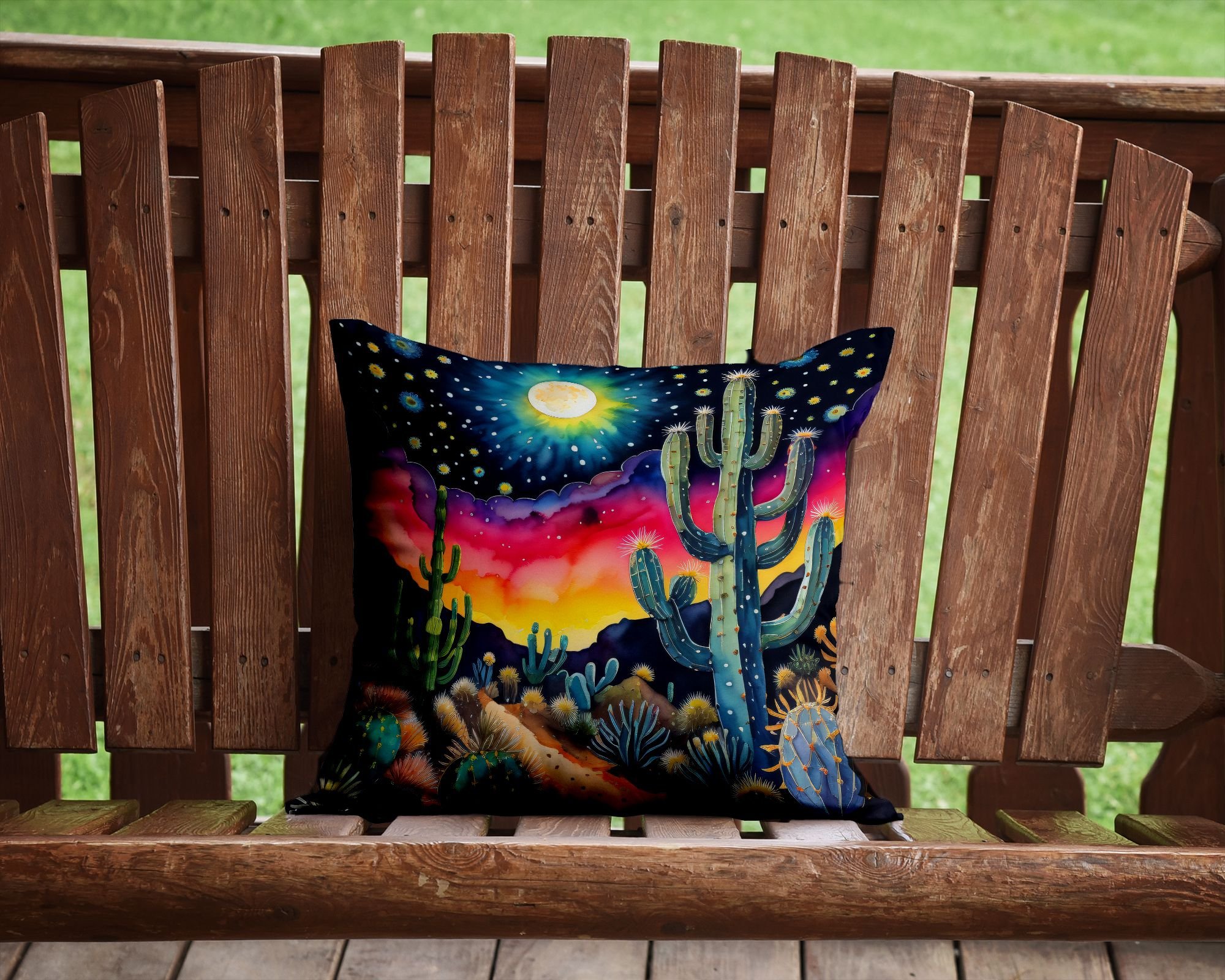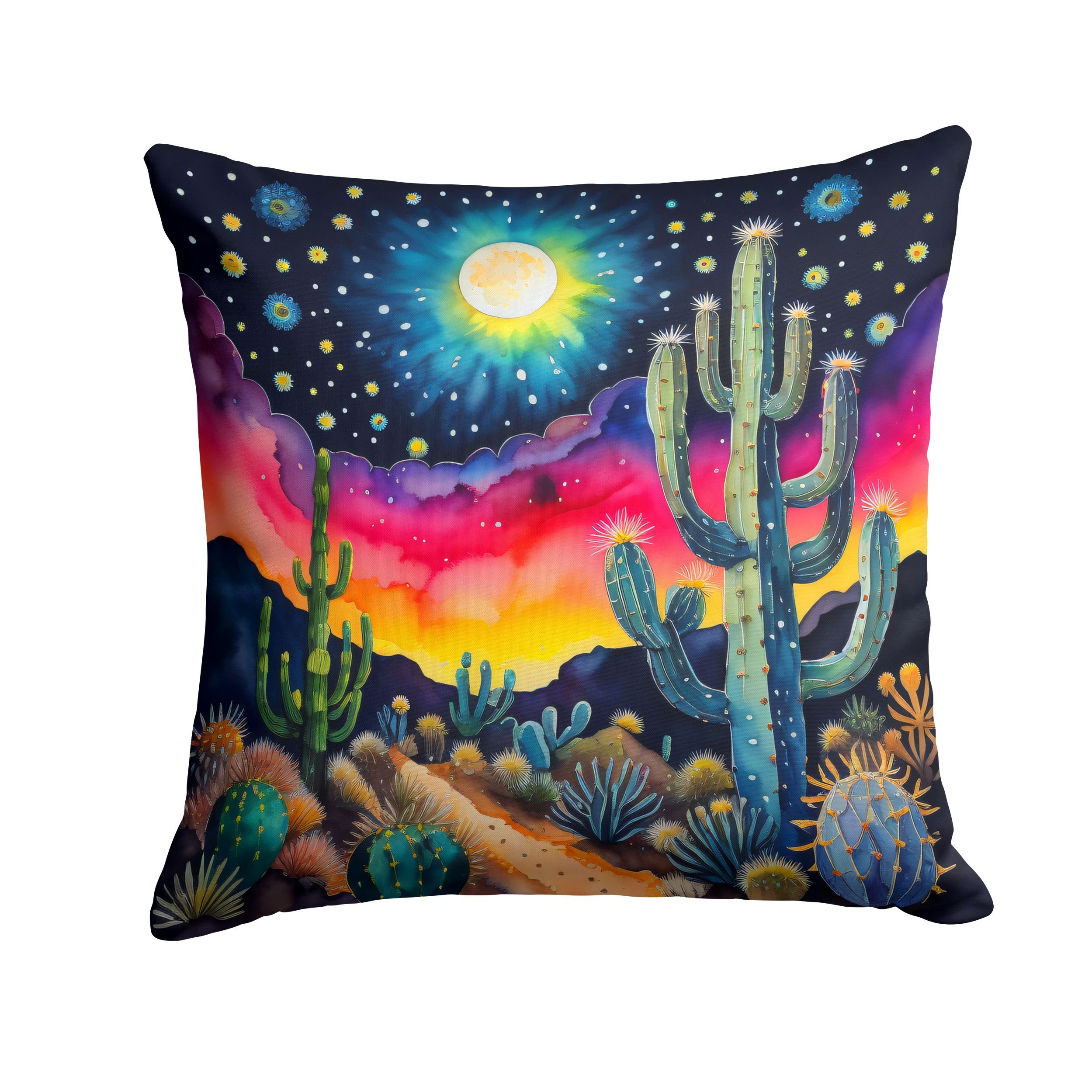 Throw Pillow featuring breed specific Queen of the Night Cactus artwork. Add a touch of vibrancy and comfort to your outdoor seating with Caroline's Treasures Fabric Decorative Pillow. Measuring approximately 14 inches by 14 inches, this outdoor pillow is crafted to elevate the appeal of your patio furniture, infusing it with vivid color and artistic flair. The pillow includes a 100% Polyester Fabric sham filled with a quality pillow form to provide superior comfort. Innovatively made from our brand new material, specifically woven for its water resistance, this pillow is designed for durability. The soft canvas fabric offers versatility in use, fit for your indoor couch or your outdoor patio, porch, or veranda. The fabric is dyed with colorfast dyes built for resilience against weather conditions, ensuring the pillow retains its beauty over time. Constructed by sewing three fabric pieces to create a sham, the polyester insert is then nestled inside to form the pillow, resulting in an overstuffed pillow that maintains its shape. Both the sham and the pillow insert are proudly made in the United States. As the pillows are handcrafted, there may be minor variations in size, further enhancing their unique charm. Experience comfort in style with Caroline's Treasures Fabric Decorative Pillow.