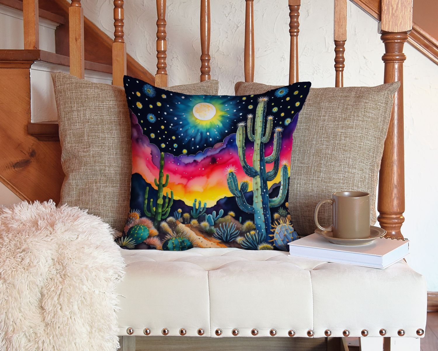 Colorful Queen of the Night Cactus Throw Pillow Machine Washable, Indoor Outdoor Decorative Pillow for Couch, Bed or Patio, 14Hx14W