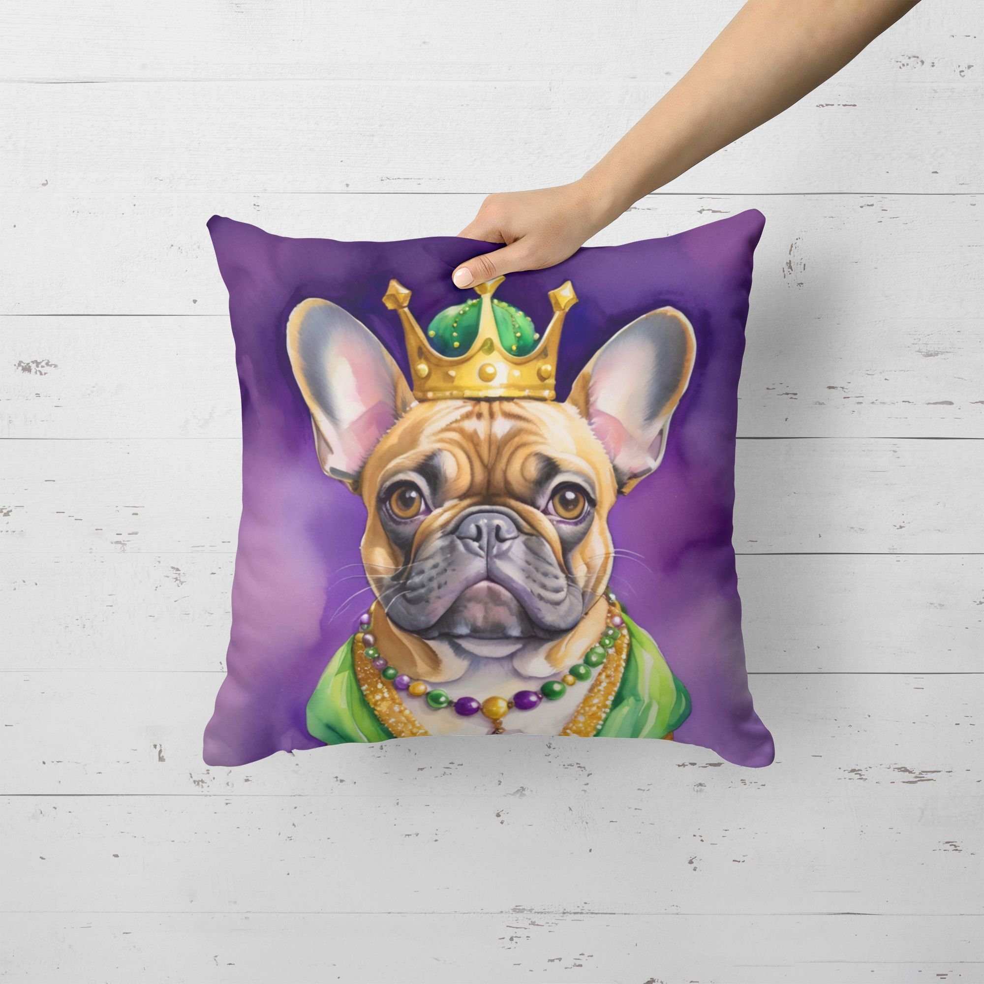 French Bulldog King of Mardi Gras Throw Pillow Machine Washable, Indoor Outdoor Decorative Pillow for Couch, Bed or Patio, 18Hx18W