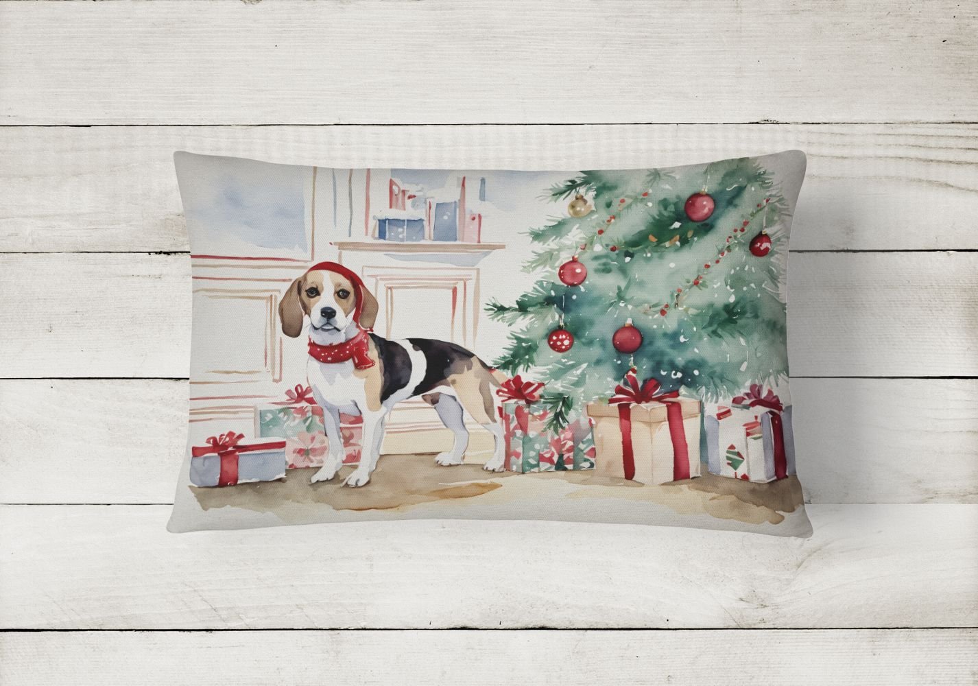 Throw Pillow featuring breed specific Beagle artwork. Celebrate Christmas with this Christmas Pillow. Embrace the fusion of comfort and style with Caroline's Treasures Fabric Decorative Pillow. This 12x16 inch outdoor pillow is designed to complement your patio furniture, adding a splash of color and artistry to your outdoor setting. Constructed with a 100% Polyester Fabric pillow sham filled with a plush pillow form, this cushion is as comfortable as it is durable. Our outdoor pillow utilizes a novel fabric, meticulously woven for enhanced water resistance. This soft canvas material is equally suited for your indoor couch as well as outdoor settings such as the patio, porch, or veranda. To ensure enduring vibrance, we employ colorfast dyes resistant to fading even when subjected to weather elements. The making of this pillow involves the delicate sewing together of three fabric pieces to create a sham, into which a polyester insert is carefully placed. The result is an overstuffed pillow that tenaciously holds its shape. With both the sham and the pillow insert crafted in the United States, these handmade pillows are a testament to superior local craftsmanship. Note that as these pillows are handmade, sizes may slightly vary, enhancing their unique appeal. Enjoy comfort in style with Caroline's Treasures Fabric Decorative Pillow.