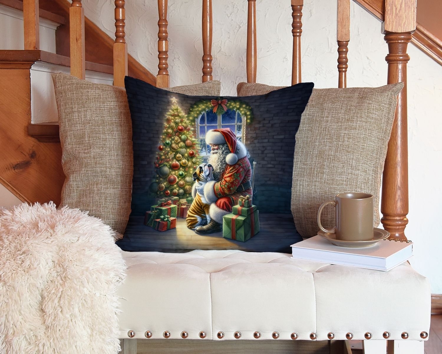 Home > English Bulldog and Santa Claus Throw Pillow Machine Washable, Indoor Outdoor Decorative Pillow for Couch, Bed or Patio, 14Hx14W