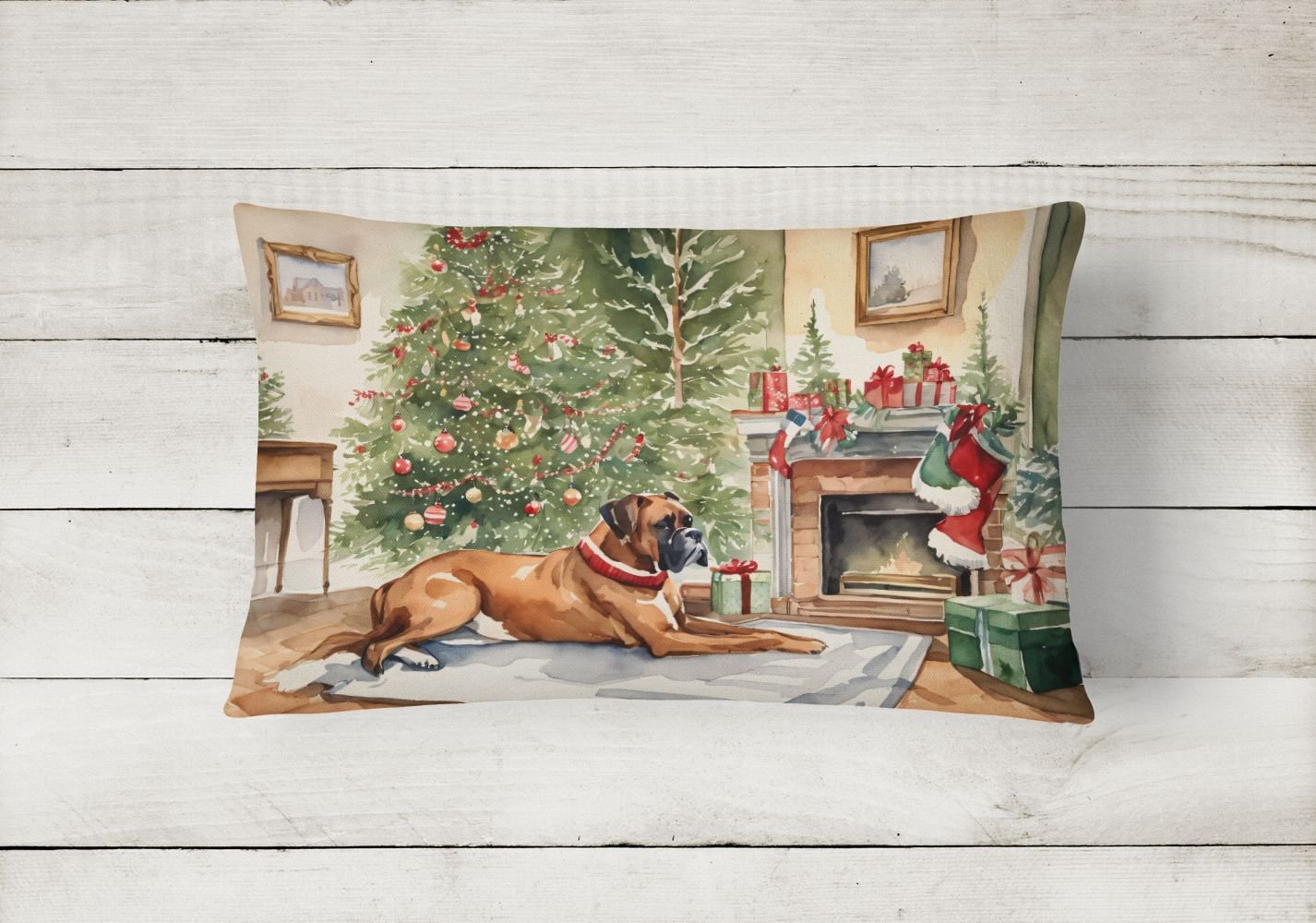 Throw Pillow featuring breed specific Boxer artwork. Celebrate Christmas with this Christmas Pillow. Embrace the fusion of comfort and style with Caroline's Treasures Fabric Decorative Pillow. This 12x16 inch outdoor pillow is designed to complement your patio furniture, adding a splash of color and artistry to your outdoor setting. Constructed with a 100% Polyester Fabric pillow sham filled with a plush pillow form, this cushion is as comfortable as it is durable. Our outdoor pillow utilizes a novel fabric, meticulously woven for enhanced water resistance. This soft canvas material is equally suited for your indoor couch as well as outdoor settings such as the patio, porch, or veranda. To ensure enduring vibrance, we employ colorfast dyes resistant to fading even when subjected to weather elements. The making of this pillow involves the delicate sewing together of three fabric pieces to create a sham, into which a polyester insert is carefully placed. The result is an overstuffed pillow that tenaciously holds its shape. With both the sham and the pillow insert crafted in the United States, these handmade pillows are a testament to superior local craftsmanship. Note that as these pillows are handmade, sizes may slightly vary, enhancing their unique appeal. Enjoy comfort in style with Caroline's Treasures Fabric Decorative Pillow.