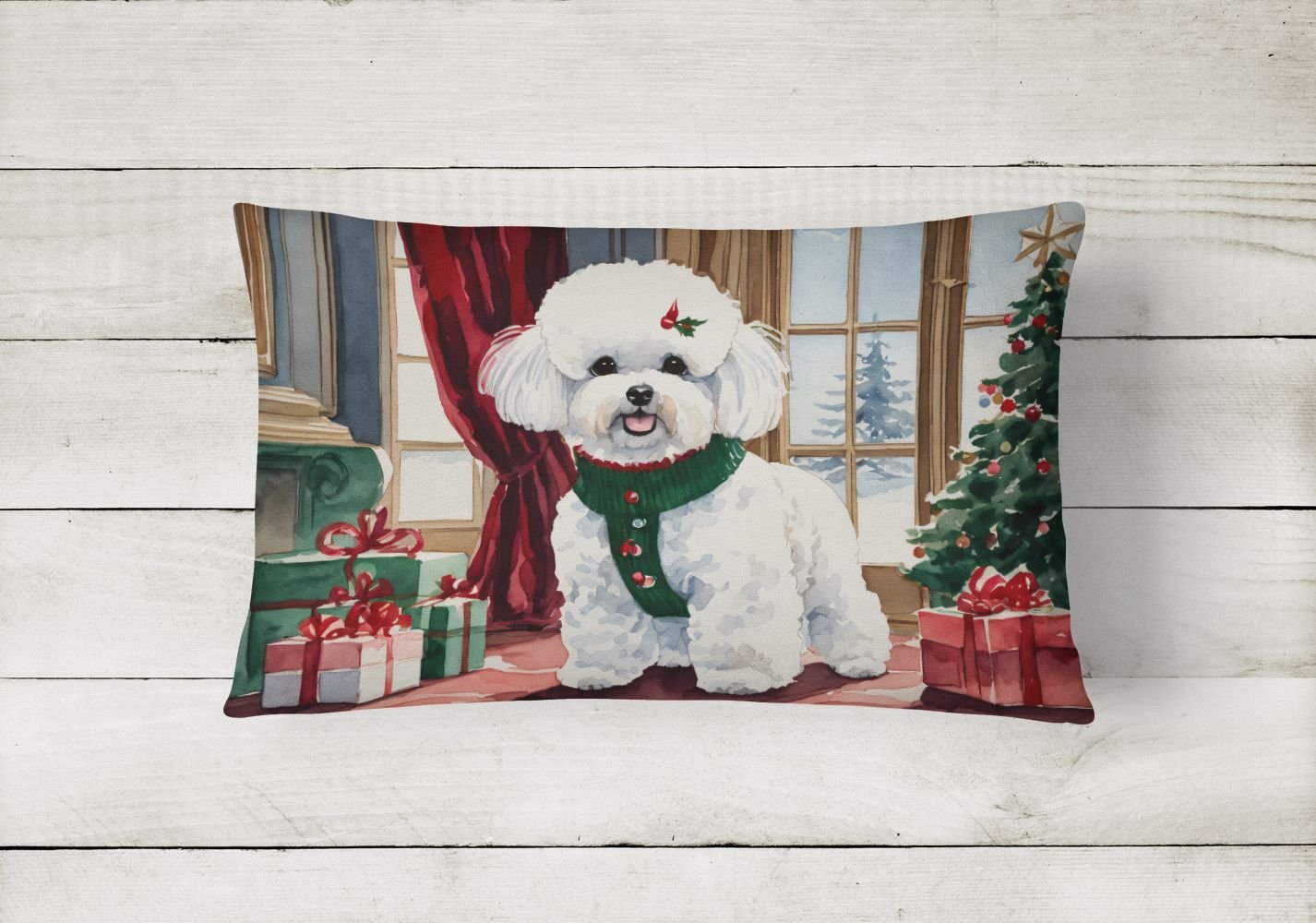 Throw Pillow featuring breed specific Bichon Frise artwork. Celebrate Christmas with this Christmas Pillow. Embrace the fusion of comfort and style with Caroline's Treasures Fabric Decorative Pillow. This 12x16 inch outdoor pillow is designed to complement your patio furniture, adding a splash of color and artistry to your outdoor setting. Constructed with a 100% Polyester Fabric pillow sham filled with a plush pillow form, this cushion is as comfortable as it is durable. Our outdoor pillow utilizes a novel fabric, meticulously woven for enhanced water resistance. This soft canvas material is equally suited for your indoor couch as well as outdoor settings such as the patio, porch, or veranda. To ensure enduring vibrance, we employ colorfast dyes resistant to fading even when subjected to weather elements. The making of this pillow involves the delicate sewing together of three fabric pieces to create a sham, into which a polyester insert is carefully placed. The result is an overstuffed pillow that tenaciously holds its shape. With both the sham and the pillow insert crafted in the United States, these handmade pillows are a testament to superior local craftsmanship. Note that as these pillows are handmade, sizes may slightly vary, enhancing their unique appeal. Enjoy comfort in style with Caroline's Treasures Fabric Decorative Pillow.