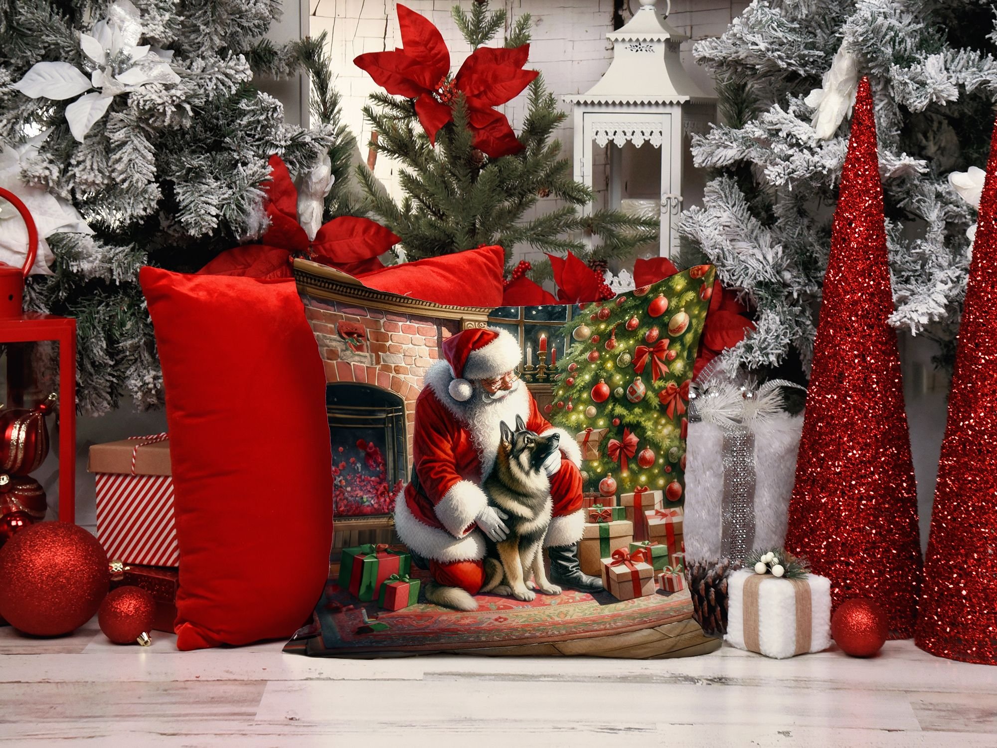 Home > Norwegian Elkhound and Santa Claus Throw Pillow Machine Washable, Indoor Outdoor Decorative Pillow for Couch, Bed or Patio, 14Hx14W
