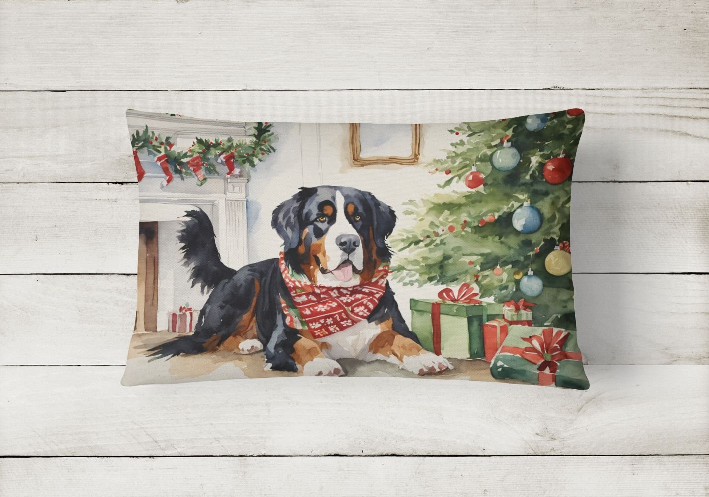 Throw Pillow featuring breed specific Bernese Mountain Dog artwork. Celebrate Christmas with this Christmas Pillow. Embrace the fusion of comfort and style with Caroline's Treasures Fabric Decorative Pillow. This 12x16 inch outdoor pillow is designed to complement your patio furniture, adding a splash of color and artistry to your outdoor setting. Constructed with a 100% Polyester Fabric pillow sham filled with a plush pillow form, this cushion is as comfortable as it is durable. Our outdoor pillow utilizes a novel fabric, meticulously woven for enhanced water resistance. This soft canvas material is equally suited for your indoor couch as well as outdoor settings such as the patio, porch, or veranda. To ensure enduring vibrance, we employ colorfast dyes resistant to fading even when subjected to weather elements. The making of this pillow involves the delicate sewing together of three fabric pieces to create a sham, into which a polyester insert is carefully placed. The result is an overstuffed pillow that tenaciously holds its shape. With both the sham and the pillow insert crafted in the United States, these handmade pillows are a testament to superior local craftsmanship. Note that as these pillows are handmade, sizes may slightly vary, enhancing their unique appeal. Enjoy comfort in style with Caroline's Treasures Fabric Decorative Pillow.