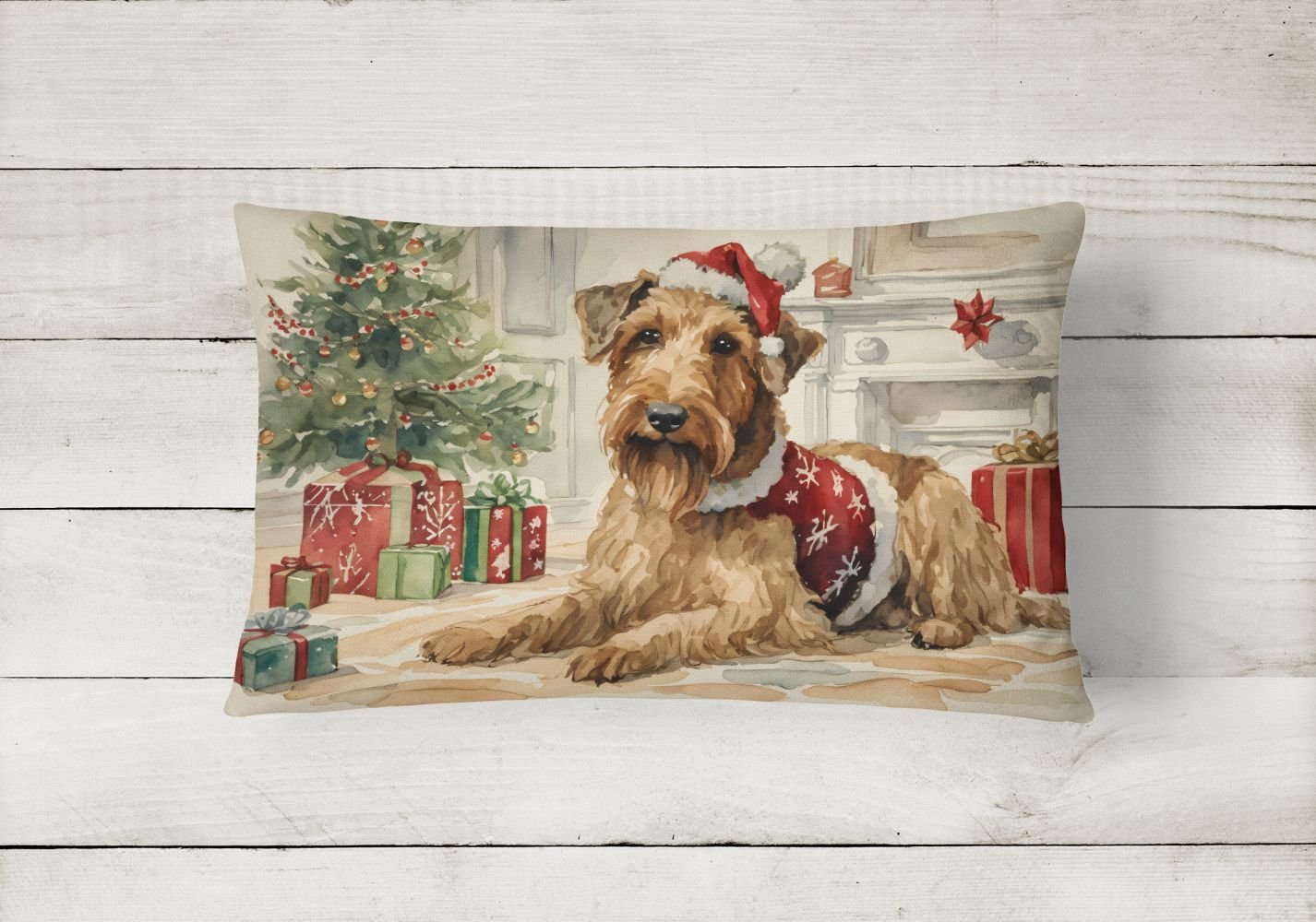 Home > Waiting on Christmas Throw Pillow Throw Pillow for Indoor Couch Bed Outdoor Patio Washable, Airedale Terrier 1215,12Hx16W
