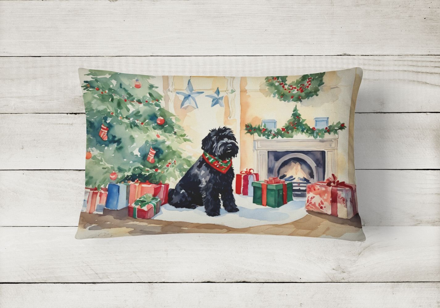Throw Pillow featuring breed specific Black Russian Terrier artwork. Celebrate Christmas with this Christmas Pillow. Embrace the fusion of comfort and style with Caroline's Treasures Fabric Decorative Pillow. This 12x16 inch outdoor pillow is designed to complement your patio furniture, adding a splash of color and artistry to your outdoor setting. Constructed with a 100% Polyester Fabric pillow sham filled with a plush pillow form, this cushion is as comfortable as it is durable. Our outdoor pillow utilizes a novel fabric, meticulously woven for enhanced water resistance. This soft canvas material is equally suited for your indoor couch as well as outdoor settings such as the patio, porch, or veranda. To ensure enduring vibrance, we employ colorfast dyes resistant to fading even when subjected to weather elements. The making of this pillow involves the delicate sewing together of three fabric pieces to create a sham, into which a polyester insert is carefully placed. The result is an overstuffed pillow that tenaciously holds its shape. With both the sham and the pillow insert crafted in the United States, these handmade pillows are a testament to superior local craftsmanship. Note that as these pillows are handmade, sizes may slightly vary, enhancing their unique appeal. Enjoy comfort in style with Caroline's Treasures Fabric Decorative Pillow.