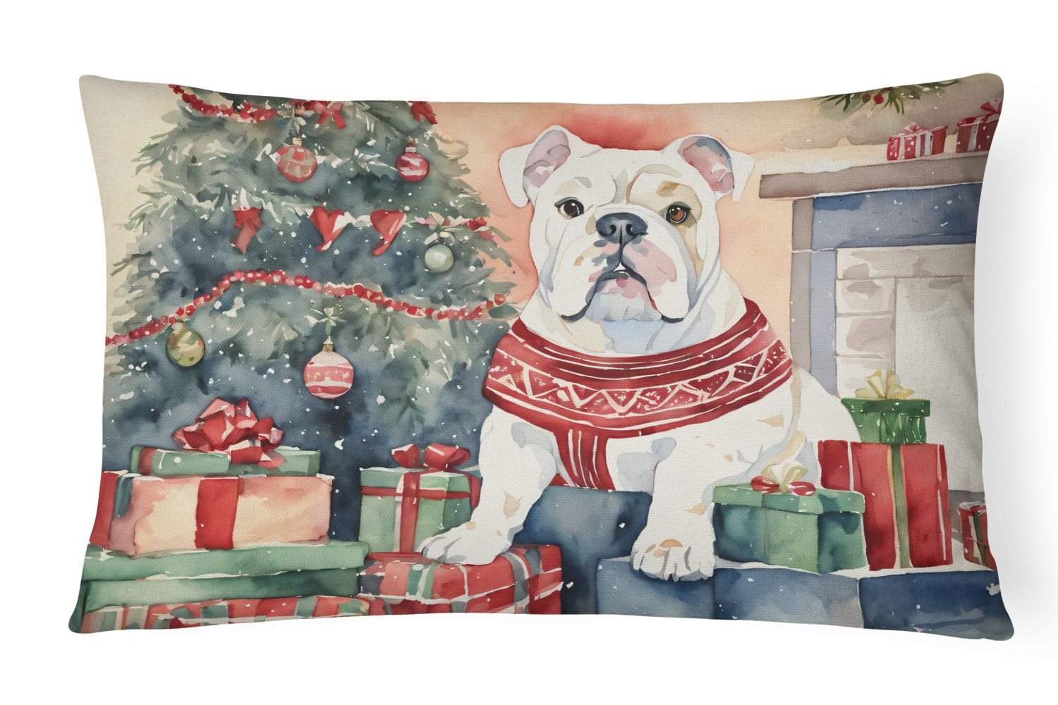Throw Pillow featuring breed specific English Bulldog artwork. Celebrate Christmas with this Christmas Pillow. Embrace the fusion of comfort and style with Caroline's Treasures Fabric Decorative Pillow. This 12x16 inch outdoor pillow is designed to complement your patio furniture, adding a splash of color and artistry to your outdoor setting. Constructed with a 100% Polyester Fabric pillow sham filled with a plush pillow form, this cushion is as comfortable as it is durable. Our outdoor pillow utilizes a novel fabric, meticulously woven for enhanced water resistance. This soft canvas material is equally suited for your indoor couch as well as outdoor settings such as the patio, porch, or veranda. To ensure enduring vibrance, we employ colorfast dyes resistant to fading even when subjected to weather elements. The making of this pillow involves the delicate sewing together of three fabric pieces to create a sham, into which a polyester insert is carefully placed. The result is an overstuffed pillow that tenaciously holds its shape. With both the sham and the pillow insert crafted in the United States, these handmade pillows are a testament to superior local craftsmanship. Note that as these pillows are handmade, sizes may slightly vary, enhancing their unique appeal. Enjoy comfort in style with Caroline's Treasures Fabric Decorative Pillow.