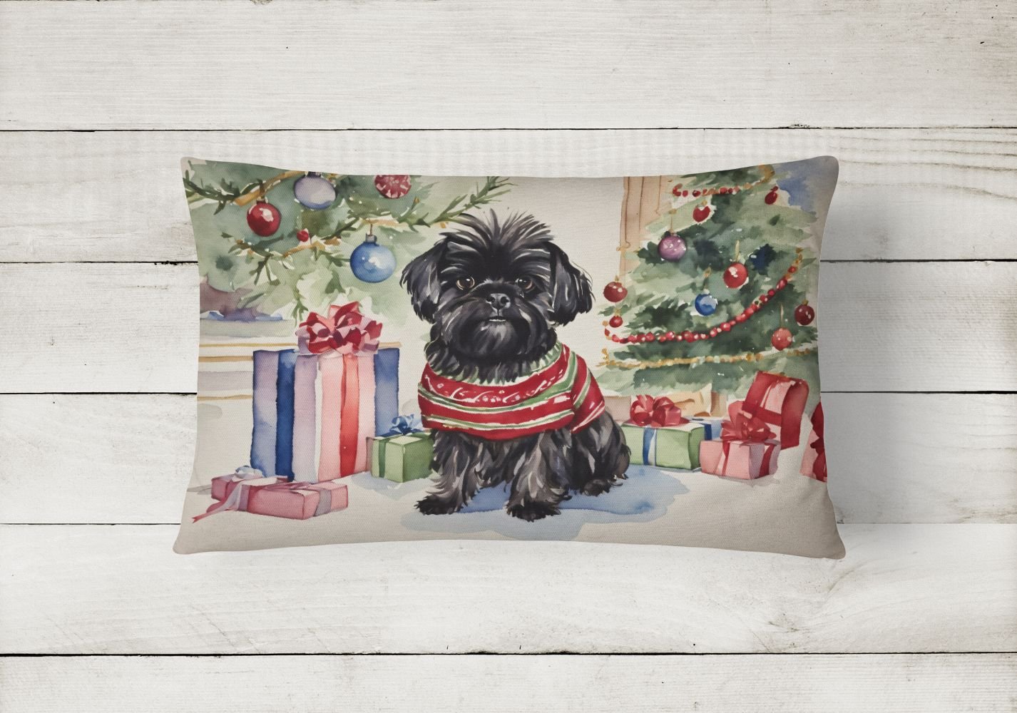 Throw Pillow featuring breed specific Affenpinscher artwork. Celebrate Christmas with this Christmas Pillow. Embrace the fusion of comfort and style with Caroline's Treasures Fabric Decorative Pillow. This 12x16 inch outdoor pillow is designed to complement your patio furniture, adding a splash of color and artistry to your outdoor setting. Constructed with a 100% Polyester Fabric pillow sham filled with a plush pillow form, this cushion is as comfortable as it is durable. Our outdoor pillow utilizes a novel fabric, meticulously woven for enhanced water resistance. This soft canvas material is equally suited for your indoor couch as well as outdoor settings such as the patio, porch, or veranda. To ensure enduring vibrance, we employ colorfast dyes resistant to fading even when subjected to weather elements. The making of this pillow involves the delicate sewing together of three fabric pieces to create a sham, into which a polyester insert is carefully placed. The result is an overstuffed pillow that tenaciously holds its shape. With both the sham and the pillow insert crafted in the United States, these handmade pillows are a testament to superior local craftsmanship. Note that as these pillows are handmade, sizes may slightly vary, enhancing their unique appeal. Enjoy comfort in style with Caroline's Treasures Fabric Decorative Pillow.