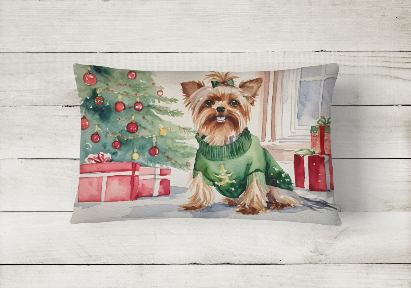 Throw Pillow featuring breed specific Yorkshire Terrier artwork. Celebrate Christmas with this Christmas Pillow. Embrace the fusion of comfort and style with Caroline's Treasures Fabric Decorative Pillow. This 12x16 inch outdoor pillow is designed to complement your patio furniture, adding a splash of color and artistry to your outdoor setting. Constructed with a 100% Polyester Fabric pillow sham filled with a plush pillow form, this cushion is as comfortable as it is durable. Our outdoor pillow utilizes a novel fabric, meticulously woven for enhanced water resistance. This soft canvas material is equally suited for your indoor couch as well as outdoor settings such as the patio, porch, or veranda. To ensure enduring vibrance, we employ colorfast dyes resistant to fading even when subjected to weather elements. The making of this pillow involves the delicate sewing together of three fabric pieces to create a sham, into which a polyester insert is carefully placed. The result is an overstuffed pillow that tenaciously holds its shape. With both the sham and the pillow insert crafted in the United States, these handmade pillows are a testament to superior local craftsmanship. Note that as these pillows are handmade, sizes may slightly vary, enhancing their unique appeal. Enjoy comfort in style with Caroline's Treasures Fabric Decorative Pillow.