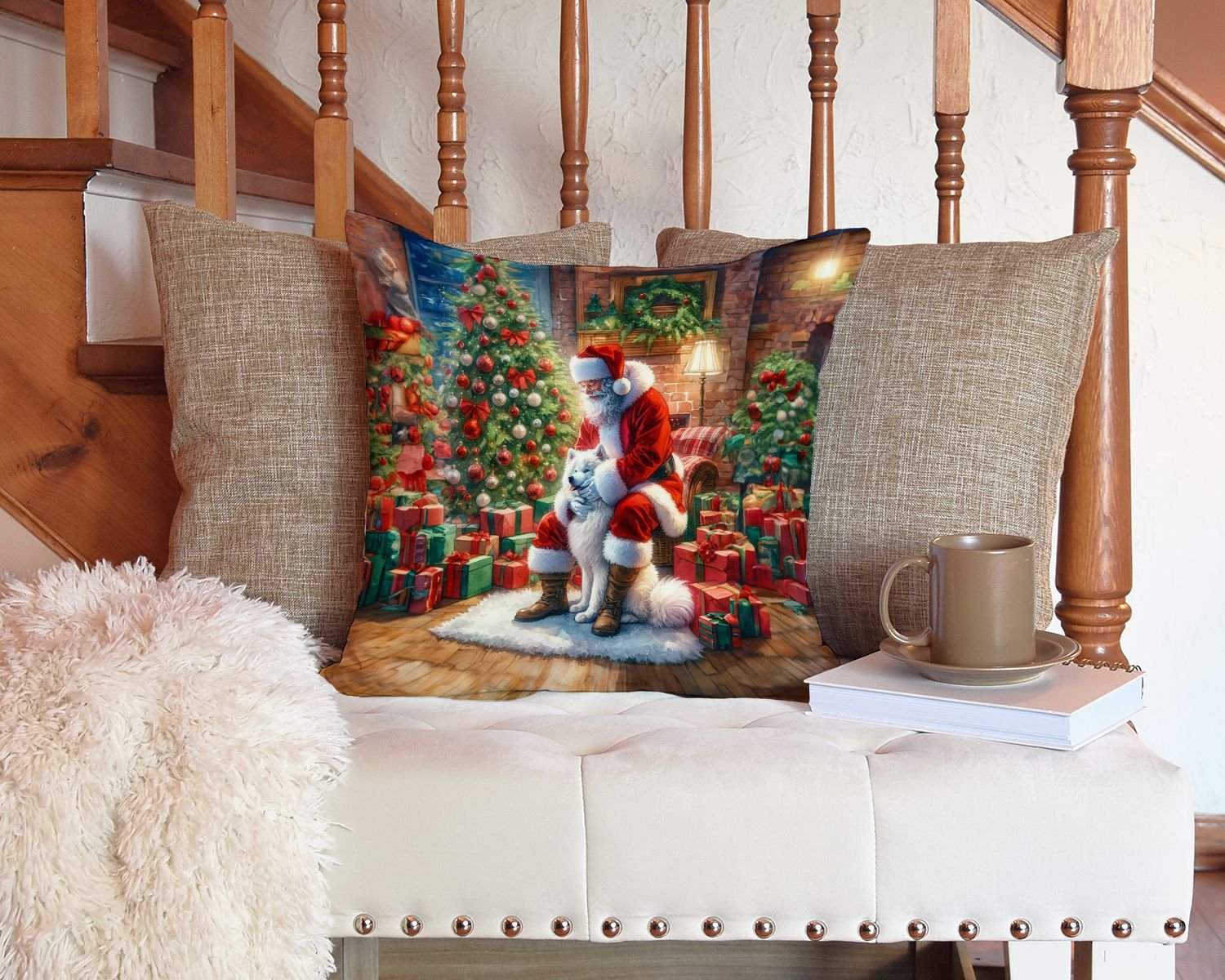 Samoyed and Santa Claus Throw Pillow Machine Washable, Indoor Outdoor Decorative Pillow for Couch, Bed or Patio, 14Hx14W Samoyed and Santa Claus Throw Pillow Machine Washable, Indoor Outdoor Decorative Pillow for Couch, Bed or Patio, 14Hx14W Samoyed and Santa Claus Throw Pillow Machine Washable, Indoor Outdoor Decorative Pillow for Couch, Bed or Patio, 14Hx14W