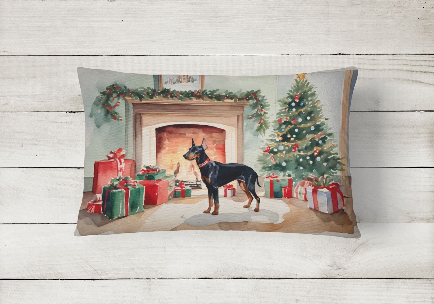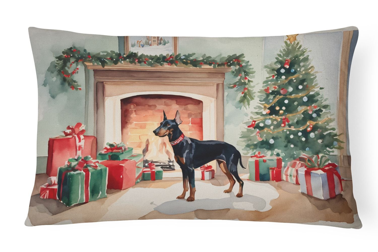 Throw Pillow featuring breed specific Doberman Pinscher artwork. Celebrate Christmas with this Christmas Pillow. Embrace the fusion of comfort and style with Caroline's Treasures Fabric Decorative Pillow. This 12x16 inch outdoor pillow is designed to complement your patio furniture, adding a splash of color and artistry to your outdoor setting. Constructed with a 100% Polyester Fabric pillow sham filled with a plush pillow form, this cushion is as comfortable as it is durable. Our outdoor pillow utilizes a novel fabric, meticulously woven for enhanced water resistance. This soft canvas material is equally suited for your indoor couch as well as outdoor settings such as the patio, porch, or veranda. To ensure enduring vibrance, we employ colorfast dyes resistant to fading even when subjected to weather elements. The making of this pillow involves the delicate sewing together of three fabric pieces to create a sham, into which a polyester insert is carefully placed. The result is an overstuffed pillow that tenaciously holds its shape. With both the sham and the pillow insert crafted in the United States, these handmade pillows are a testament to superior local craftsmanship. Note that as these pillows are handmade, sizes may slightly vary, enhancing their unique appeal. Enjoy comfort in style with Caroline's Treasures Fabric Decorative Pillow.