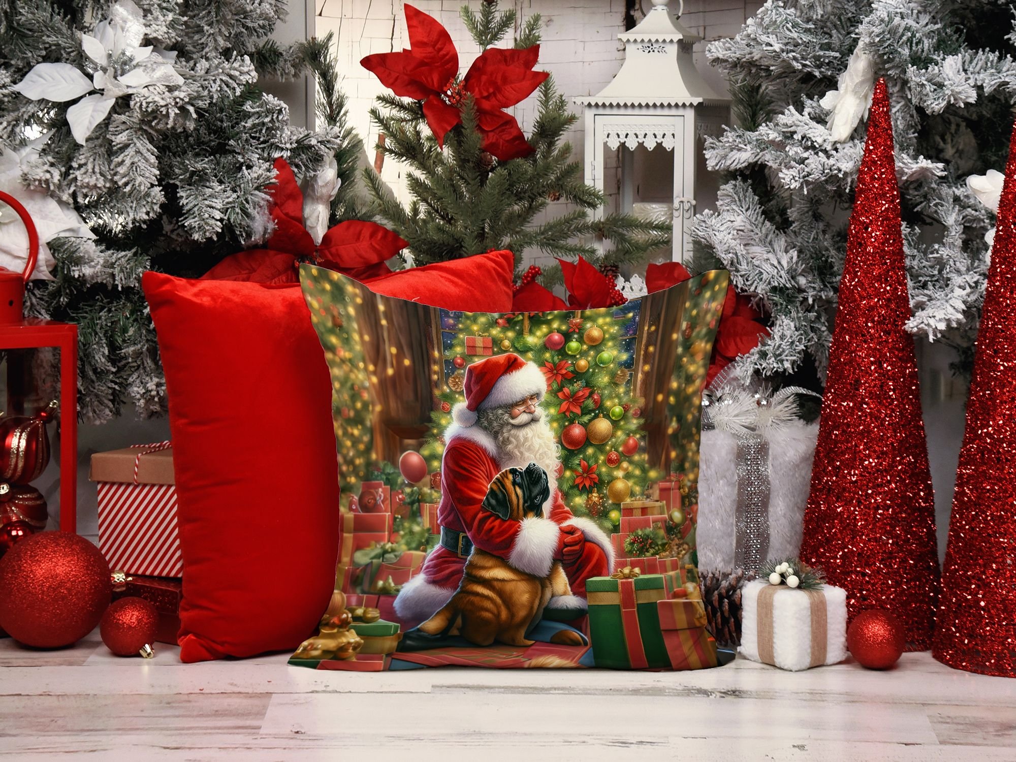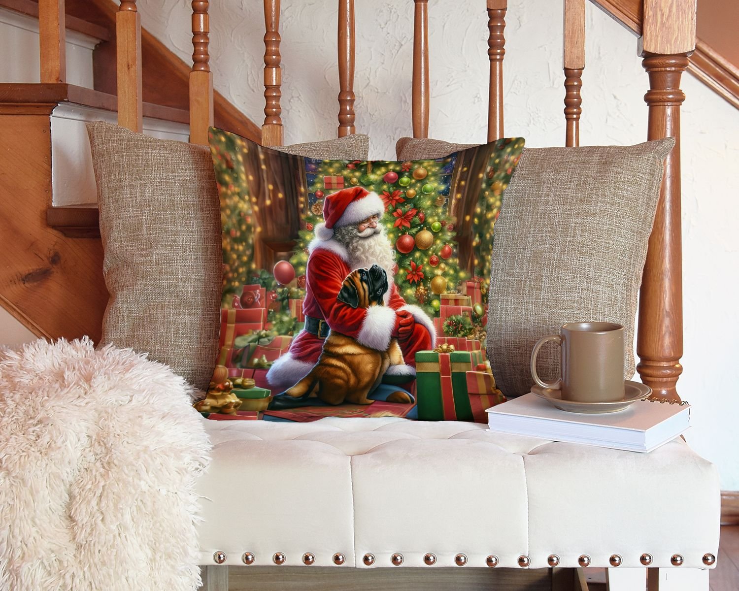 Mastiff and Santa Claus Throw Pillow Machine Washable, Indoor Outdoor Decorative Pillow for Couch, Bed or Patio, 14Hx14W