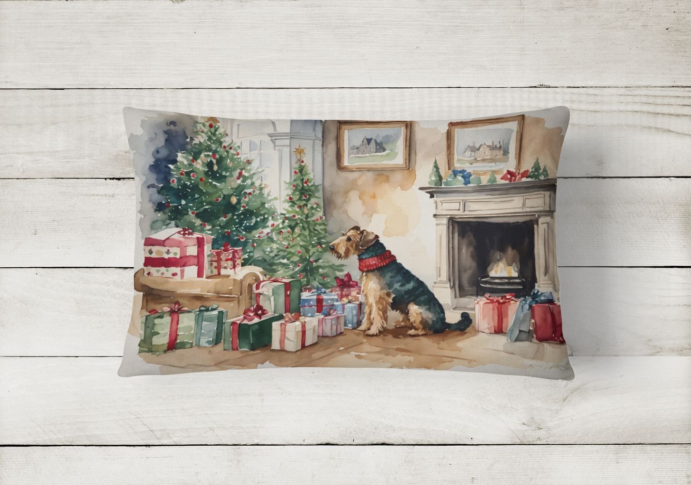 Home > Waiting on Christmas Throw Pillow Throw Pillow for Indoor Couch Bed Outdoor Patio Washable, Airedale Terrier 1214,12Hx16W