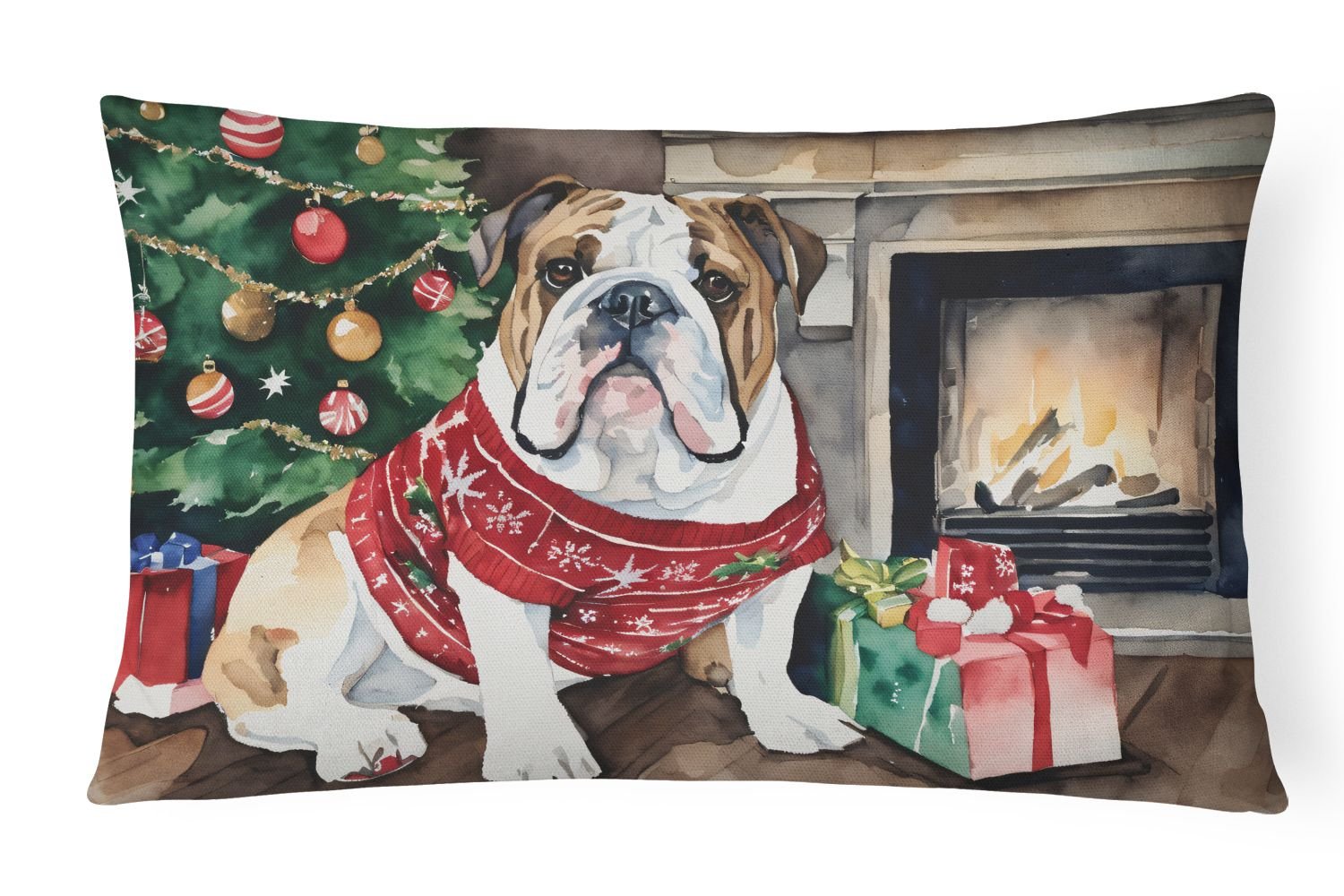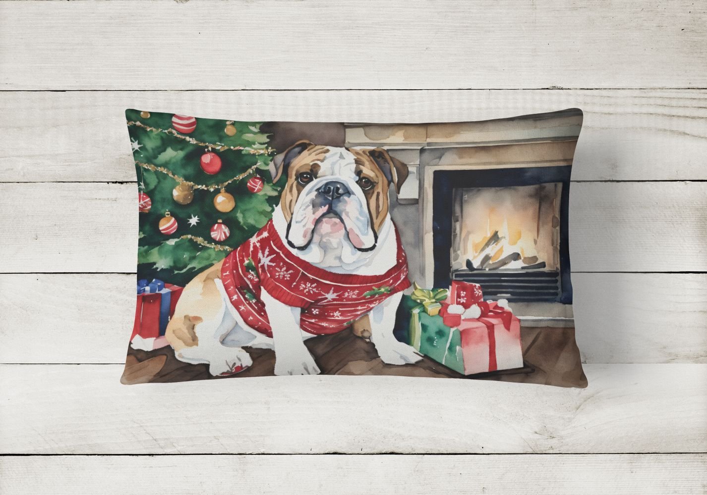 Throw Pillow featuring breed specific English Bulldog artwork. Celebrate Christmas with this Christmas Pillow. Embrace the fusion of comfort and style with Caroline's Treasures Fabric Decorative Pillow. This 12x16 inch outdoor pillow is designed to complement your patio furniture, adding a splash of color and artistry to your outdoor setting. Constructed with a 100% Polyester Fabric pillow sham filled with a plush pillow form, this cushion is as comfortable as it is durable. Our outdoor pillow utilizes a novel fabric, meticulously woven for enhanced water resistance. This soft canvas material is equally suited for your indoor couch as well as outdoor settings such as the patio, porch, or veranda. To ensure enduring vibrance, we employ colorfast dyes resistant to fading even when subjected to weather elements. The making of this pillow involves the delicate sewing together of three fabric pieces to create a sham, into which a polyester insert is carefully placed. The result is an overstuffed pillow that tenaciously holds its shape. With both the sham and the pillow insert crafted in the United States, these handmade pillows are a testament to superior local craftsmanship. Note that as these pillows are handmade, sizes may slightly vary, enhancing their unique appeal. Enjoy comfort in style with Caroline's Treasures Fabric Decorative Pillow.