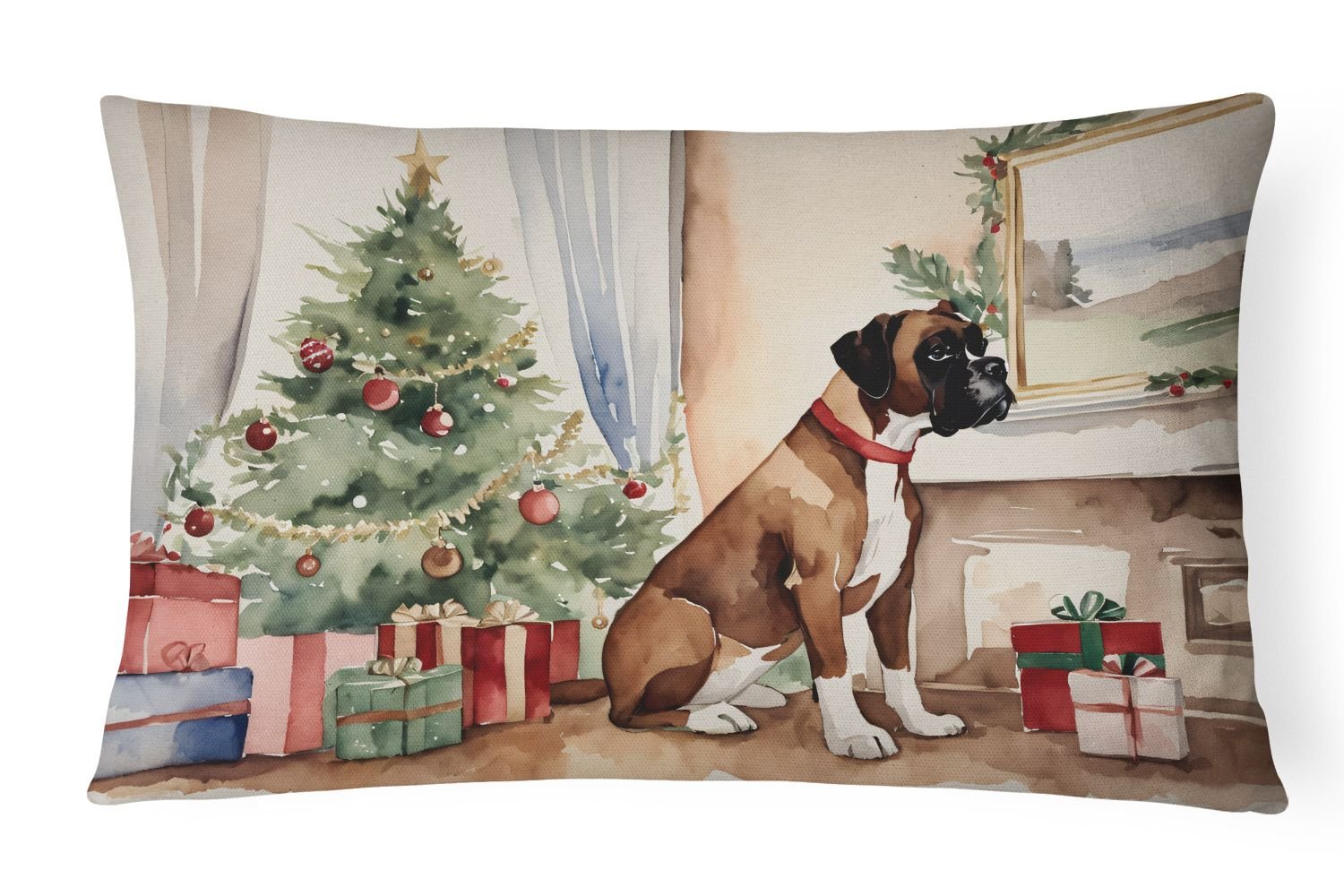 Throw Pillow featuring breed specific Boxer artwork. Celebrate Christmas with this Christmas Pillow. Embrace the fusion of comfort and style with Caroline's Treasures Fabric Decorative Pillow. This 12x16 inch outdoor pillow is designed to complement your patio furniture, adding a splash of color and artistry to your outdoor setting. Constructed with a 100% Polyester Fabric pillow sham filled with a plush pillow form, this cushion is as comfortable as it is durable. Our outdoor pillow utilizes a novel fabric, meticulously woven for enhanced water resistance. This soft canvas material is equally suited for your indoor couch as well as outdoor settings such as the patio, porch, or veranda. To ensure enduring vibrance, we employ colorfast dyes resistant to fading even when subjected to weather elements. The making of this pillow involves the delicate sewing together of three fabric pieces to create a sham, into which a polyester insert is carefully placed. The result is an overstuffed pillow that tenaciously holds its shape. With both the sham and the pillow insert crafted in the United States, these handmade pillows are a testament to superior local craftsmanship. Note that as these pillows are handmade, sizes may slightly vary, enhancing their unique appeal. Enjoy comfort in style with Caroline's Treasures Fabric Decorative Pillow.