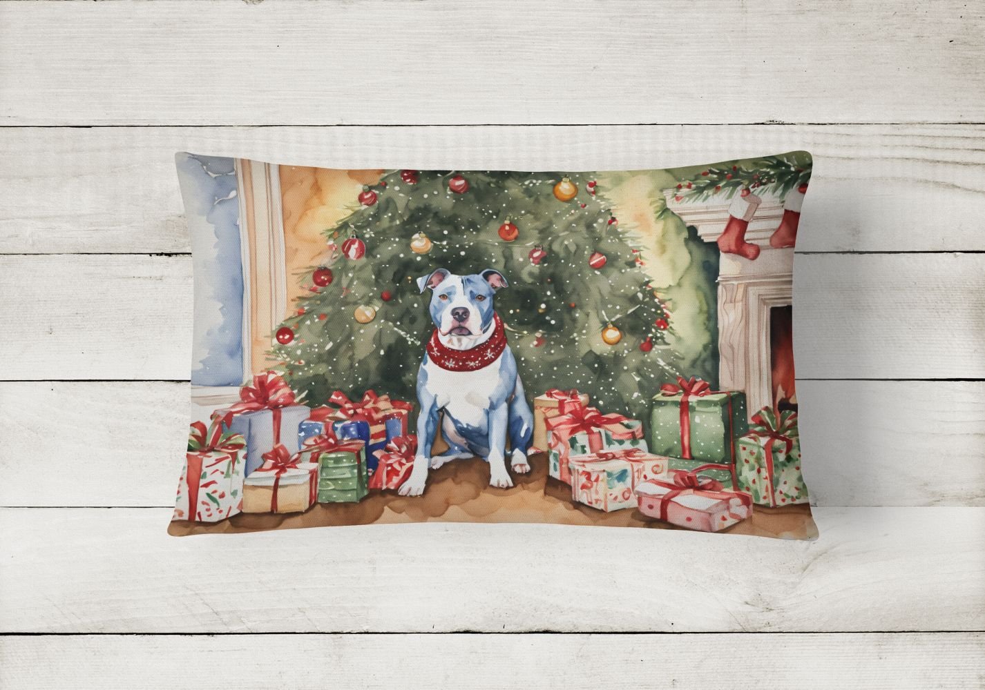 Throw Pillow featuring breed specific Pit Bull Terrier artwork. Celebrate Christmas with this Christmas Pillow. Embrace the fusion of comfort and style with Caroline's Treasures Fabric Decorative Pillow. This 12x16 inch outdoor pillow is designed to complement your patio furniture, adding a splash of color and artistry to your outdoor setting. Constructed with a 100% Polyester Fabric pillow sham filled with a plush pillow form, this cushion is as comfortable as it is durable. Our outdoor pillow utilizes a novel fabric, meticulously woven for enhanced water resistance. This soft canvas material is equally suited for your indoor couch as well as outdoor settings such as the patio, porch, or veranda. To ensure enduring vibrance, we employ colorfast dyes resistant to fading even when subjected to weather elements. The making of this pillow involves the delicate sewing together of three fabric pieces to create a sham, into which a polyester insert is carefully placed. The result is an overstuffed pillow that tenaciously holds its shape. With both the sham and the pillow insert crafted in the United States, these handmade pillows are a testament to superior local craftsmanship. Note that as these pillows are handmade, sizes may slightly vary, enhancing their unique appeal. Enjoy comfort in style with Caroline's Treasures Fabric Decorative Pillow.