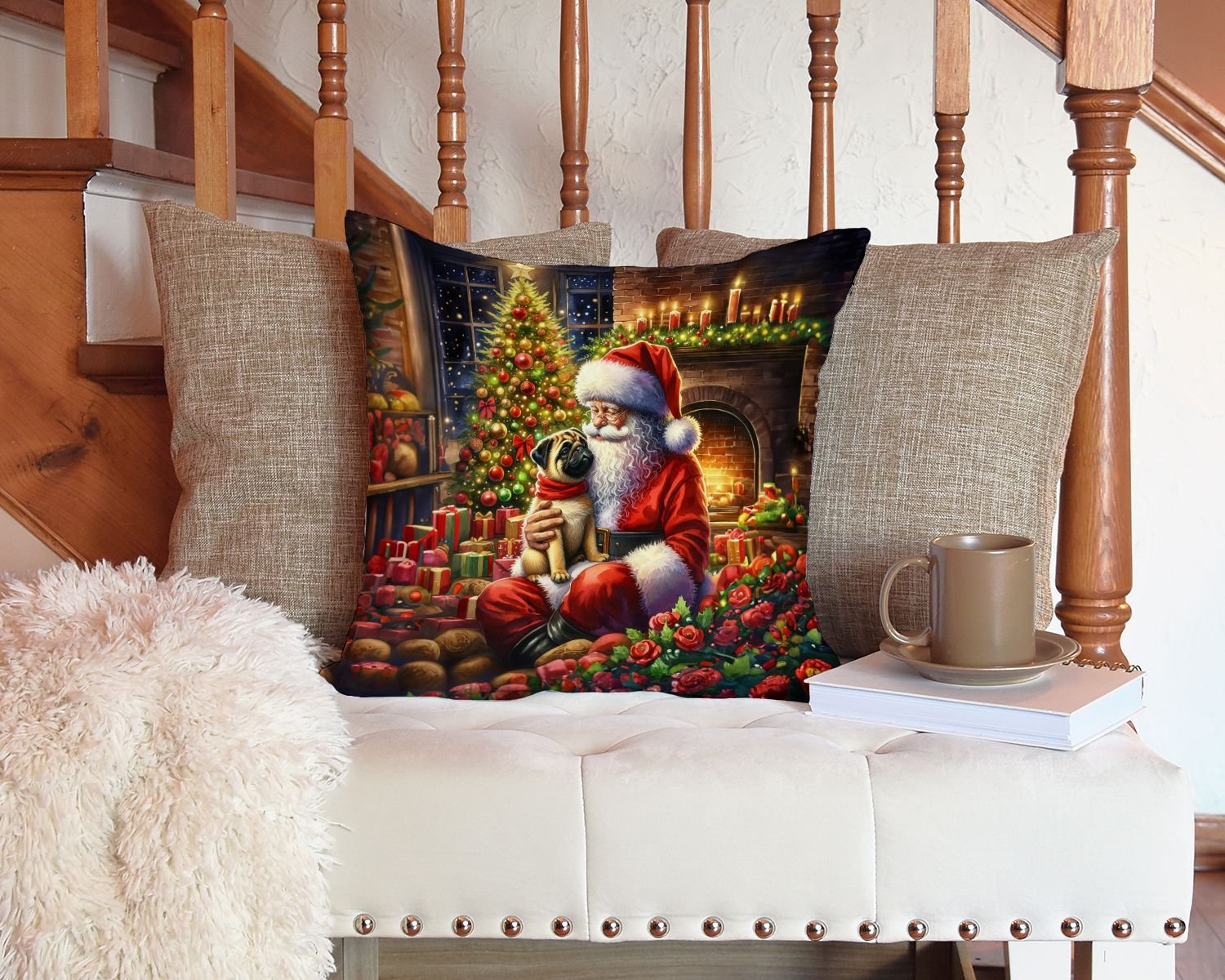 Home > Fawn Pug and Santa Claus Throw Pillow Machine Washable, Indoor Outdoor Decorative Pillow for Couch, Bed or Patio, 14Hx14W