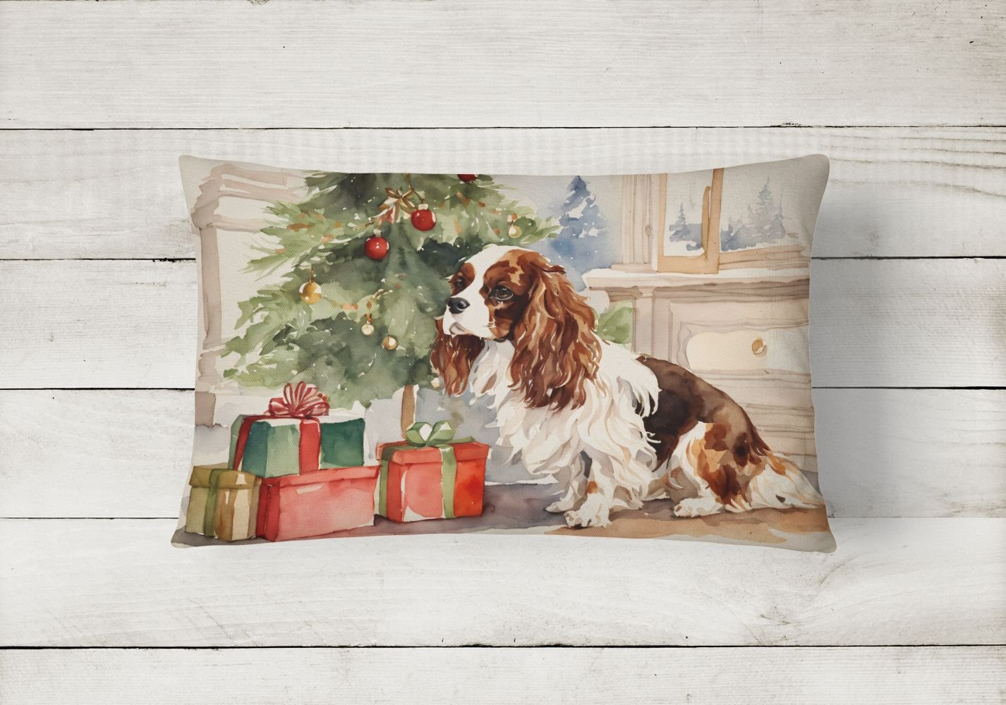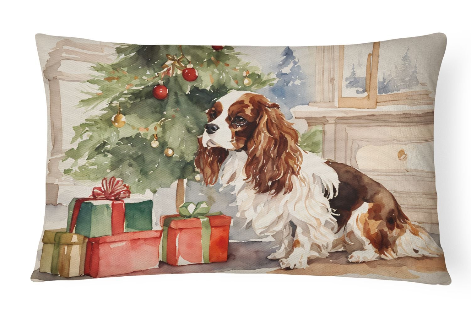 Throw Pillow featuring breed specific Cavalier King Charles Spaniel artwork. Celebrate Christmas with this Christmas Pillow. Embrace the fusion of comfort and style with Caroline's Treasures Fabric Decorative Pillow. This 12x16 inch outdoor pillow is designed to complement your patio furniture, adding a splash of color and artistry to your outdoor setting. Constructed with a 100% Polyester Fabric pillow sham filled with a plush pillow form, this cushion is as comfortable as it is durable. Our outdoor pillow utilizes a novel fabric, meticulously woven for enhanced water resistance. This soft canvas material is equally suited for your indoor couch as well as outdoor settings such as the patio, porch, or veranda. To ensure enduring vibrance, we employ colorfast dyes resistant to fading even when subjected to weather elements. The making of this pillow involves the delicate sewing together of three fabric pieces to create a sham, into which a polyester insert is carefully placed. The result is an overstuffed pillow that tenaciously holds its shape. With both the sham and the pillow insert crafted in the United States, these handmade pillows are a testament to superior local craftsmanship. Note that as these pillows are handmade, sizes may slightly vary, enhancing their unique appeal. Enjoy comfort in style with Caroline's Treasures Fabric Decorative Pillow.