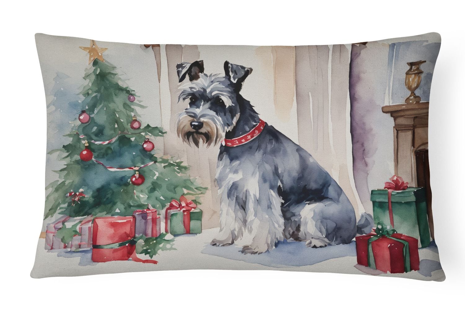 Throw Pillow featuring breed specific Schnauzer artwork. Celebrate Christmas with this Christmas Pillow. Embrace the fusion of comfort and style with Caroline's Treasures Fabric Decorative Pillow. This 12x16 inch outdoor pillow is designed to complement your patio furniture, adding a splash of color and artistry to your outdoor setting. Constructed with a 100% Polyester Fabric pillow sham filled with a plush pillow form, this cushion is as comfortable as it is durable. Our outdoor pillow utilizes a novel fabric, meticulously woven for enhanced water resistance. This soft canvas material is equally suited for your indoor couch as well as outdoor settings such as the patio, porch, or veranda. To ensure enduring vibrance, we employ colorfast dyes resistant to fading even when subjected to weather elements. The making of this pillow involves the delicate sewing together of three fabric pieces to create a sham, into which a polyester insert is carefully placed. The result is an overstuffed pillow that tenaciously holds its shape. With both the sham and the pillow insert crafted in the United States, these handmade pillows are a testament to superior local craftsmanship. Note that as these pillows are handmade, sizes may slightly vary, enhancing their unique appeal. Enjoy comfort in style with Caroline's Treasures Fabric Decorative Pillow.