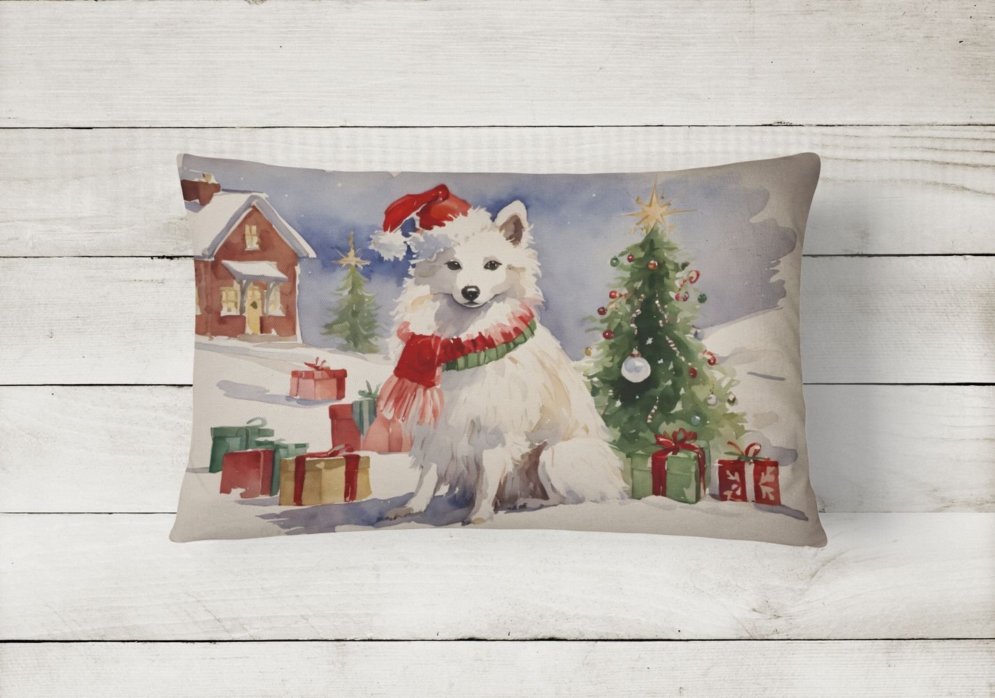 Throw Pillow featuring breed specific American Eskimo artwork. Celebrate Christmas with this Christmas Pillow. Embrace the fusion of comfort and style with Caroline's Treasures Fabric Decorative Pillow. This 12x16 inch outdoor pillow is designed to complement your patio furniture, adding a splash of color and artistry to your outdoor setting. Constructed with a 100% Polyester Fabric pillow sham filled with a plush pillow form, this cushion is as comfortable as it is durable. Our outdoor pillow utilizes a novel fabric, meticulously woven for enhanced water resistance. This soft canvas material is equally suited for your indoor couch as well as outdoor settings such as the patio, porch, or veranda. To ensure enduring vibrance, we employ colorfast dyes resistant to fading even when subjected to weather elements. The making of this pillow involves the delicate sewing together of three fabric pieces to create a sham, into which a polyester insert is carefully placed. The result is an overstuffed pillow that tenaciously holds its shape. With both the sham and the pillow insert crafted in the United States, these handmade pillows are a testament to superior local craftsmanship. Note that as these pillows are handmade, sizes may slightly vary, enhancing their unique appeal. Enjoy comfort in style with Caroline's Treasures Fabric Decorative Pillow.