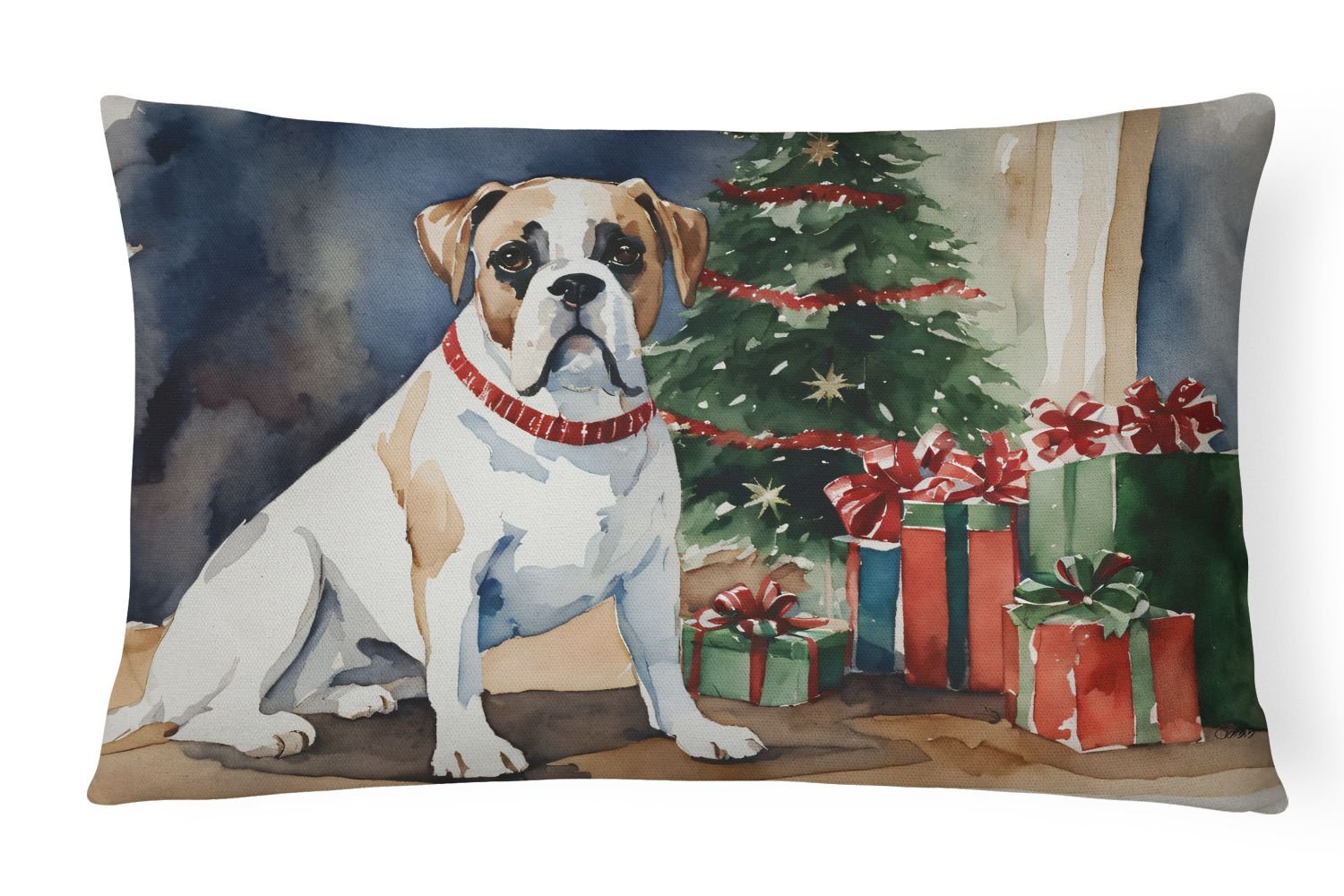Throw Pillow featuring breed specific Boxer artwork. Celebrate Christmas with this Christmas Pillow. Embrace the fusion of comfort and style with Caroline's Treasures Fabric Decorative Pillow. This 12x16 inch outdoor pillow is designed to complement your patio furniture, adding a splash of color and artistry to your outdoor setting. Constructed with a 100% Polyester Fabric pillow sham filled with a plush pillow form, this cushion is as comfortable as it is durable. Our outdoor pillow utilizes a novel fabric, meticulously woven for enhanced water resistance. This soft canvas material is equally suited for your indoor couch as well as outdoor settings such as the patio, porch, or veranda. To ensure enduring vibrance, we employ colorfast dyes resistant to fading even when subjected to weather elements. The making of this pillow involves the delicate sewing together of three fabric pieces to create a sham, into which a polyester insert is carefully placed. The result is an overstuffed pillow that tenaciously holds its shape. With both the sham and the pillow insert crafted in the United States, these handmade pillows are a testament to superior local craftsmanship. Note that as these pillows are handmade, sizes may slightly vary, enhancing their unique appeal. Enjoy comfort in style with Caroline's Treasures Fabric Decorative Pillow.