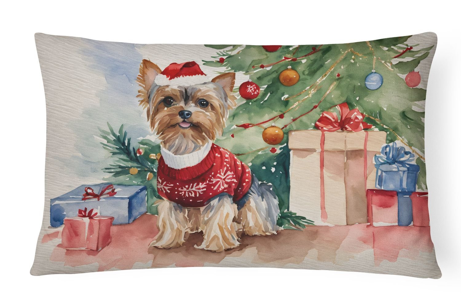 Throw Pillow featuring breed specific Yorkshire Terrier artwork. Celebrate Christmas with this Christmas Pillow. Embrace the fusion of comfort and style with Caroline's Treasures Fabric Decorative Pillow. This 12x16 inch outdoor pillow is designed to complement your patio furniture, adding a splash of color and artistry to your outdoor setting. Constructed with a 100% Polyester Fabric pillow sham filled with a plush pillow form, this cushion is as comfortable as it is durable. Our outdoor pillow utilizes a novel fabric, meticulously woven for enhanced water resistance. This soft canvas material is equally suited for your indoor couch as well as outdoor settings such as the patio, porch, or veranda. To ensure enduring vibrance, we employ colorfast dyes resistant to fading even when subjected to weather elements. The making of this pillow involves the delicate sewing together of three fabric pieces to create a sham, into which a polyester insert is carefully placed. The result is an overstuffed pillow that tenaciously holds its shape. With both the sham and the pillow insert crafted in the United States, these handmade pillows are a testament to superior local craftsmanship. Note that as these pillows are handmade, sizes may slightly vary, enhancing their unique appeal. Enjoy comfort in style with Caroline's Treasures Fabric Decorative Pillow.