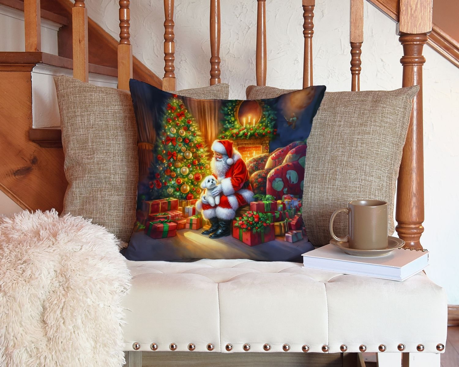Maltese and Santa Claus Throw Pillow Machine Washable, Indoor Outdoor Decorative Pillow for Couch, Bed or Patio, 14Hx14W