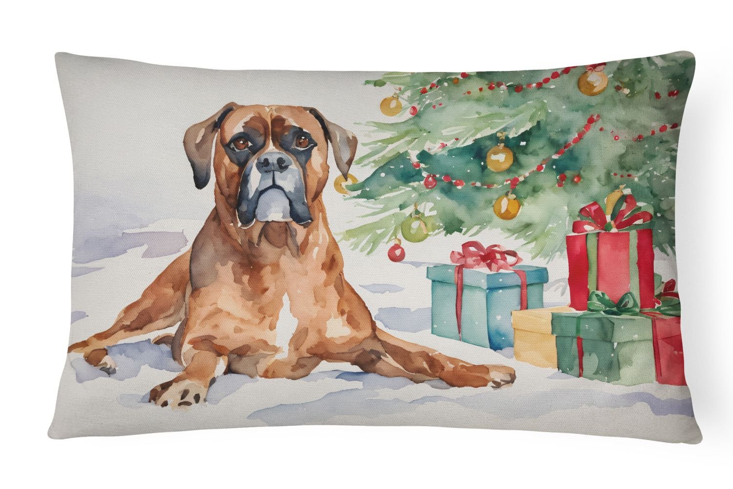 Throw Pillow featuring breed specific Boxer artwork. Celebrate Christmas with this Christmas Pillow. Embrace the fusion of comfort and style with Caroline's Treasures Fabric Decorative Pillow. This 12x16 inch outdoor pillow is designed to complement your patio furniture, adding a splash of color and artistry to your outdoor setting. Constructed with a 100% Polyester Fabric pillow sham filled with a plush pillow form, this cushion is as comfortable as it is durable. Our outdoor pillow utilizes a novel fabric, meticulously woven for enhanced water resistance. This soft canvas material is equally suited for your indoor couch as well as outdoor settings such as the patio, porch, or veranda. To ensure enduring vibrance, we employ colorfast dyes resistant to fading even when subjected to weather elements. The making of this pillow involves the delicate sewing together of three fabric pieces to create a sham, into which a polyester insert is carefully placed. The result is an overstuffed pillow that tenaciously holds its shape. With both the sham and the pillow insert crafted in the United States, these handmade pillows are a testament to superior local craftsmanship. Note that as these pillows are handmade, sizes may slightly vary, enhancing their unique appeal. Enjoy comfort in style with Caroline's Treasures Fabric Decorative Pillow.