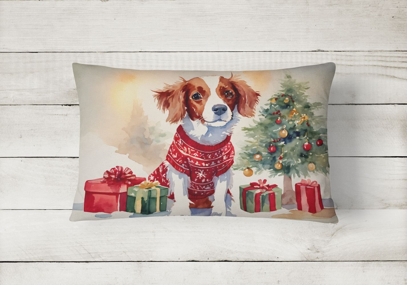 Throw Pillow featuring breed specific Brittany artwork. Celebrate Christmas with this Christmas Pillow. Embrace the fusion of comfort and style with Caroline's Treasures Fabric Decorative Pillow. This 12x16 inch outdoor pillow is designed to complement your patio furniture, adding a splash of color and artistry to your outdoor setting. Constructed with a 100% Polyester Fabric pillow sham filled with a plush pillow form, this cushion is as comfortable as it is durable. Our outdoor pillow utilizes a novel fabric, meticulously woven for enhanced water resistance. This soft canvas material is equally suited for your indoor couch as well as outdoor settings such as the patio, porch, or veranda. To ensure enduring vibrance, we employ colorfast dyes resistant to fading even when subjected to weather elements. The making of this pillow involves the delicate sewing together of three fabric pieces to create a sham, into which a polyester insert is carefully placed. The result is an overstuffed pillow that tenaciously holds its shape. With both the sham and the pillow insert crafted in the United States, these handmade pillows are a testament to superior local craftsmanship. Note that as these pillows are handmade, sizes may slightly vary, enhancing their unique appeal. Enjoy comfort in style with Caroline's Treasures Fabric Decorative Pillow.