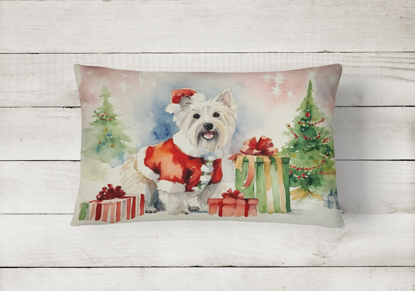 Throw Pillow featuring breed specific West Highland White Terrier artwork. Celebrate Christmas with this Christmas Pillow. Embrace the fusion of comfort and style with Caroline's Treasures Fabric Decorative Pillow. This 12x16 inch outdoor pillow is designed to complement your patio furniture, adding a splash of color and artistry to your outdoor setting. Constructed with a 100% Polyester Fabric pillow sham filled with a plush pillow form, this cushion is as comfortable as it is durable. Our outdoor pillow utilizes a novel fabric, meticulously woven for enhanced water resistance. This soft canvas material is equally suited for your indoor couch as well as outdoor settings such as the patio, porch, or veranda. To ensure enduring vibrance, we employ colorfast dyes resistant to fading even when subjected to weather elements. The making of this pillow involves the delicate sewing together of three fabric pieces to create a sham, into which a polyester insert is carefully placed. The result is an overstuffed pillow that tenaciously holds its shape. With both the sham and the pillow insert crafted in the United States, these handmade pillows are a testament to superior local craftsmanship. Note that as these pillows are handmade, sizes may slightly vary, enhancing their unique appeal. Enjoy comfort in style with Caroline's Treasures Fabric Decorative Pillow.