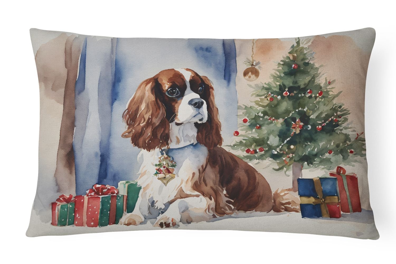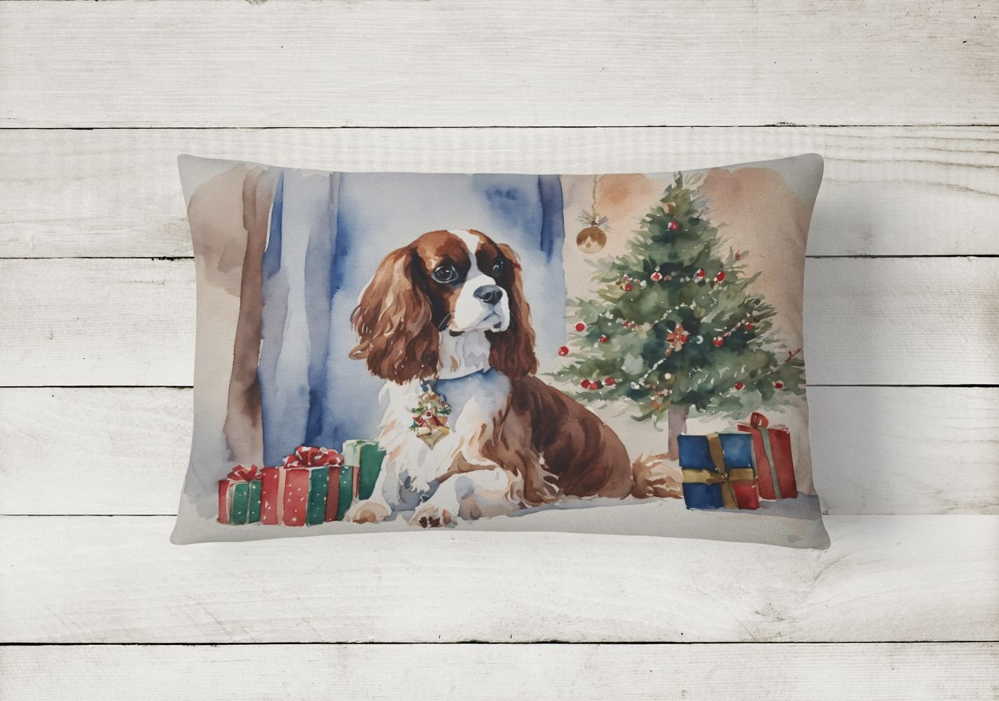 Throw Pillow featuring breed specific Cavalier King Charles Spaniel artwork. Celebrate Christmas with this Christmas Pillow. Embrace the fusion of comfort and style with Caroline's Treasures Fabric Decorative Pillow. This 12x16 inch outdoor pillow is designed to complement your patio furniture, adding a splash of color and artistry to your outdoor setting. Constructed with a 100% Polyester Fabric pillow sham filled with a plush pillow form, this cushion is as comfortable as it is durable. Our outdoor pillow utilizes a novel fabric, meticulously woven for enhanced water resistance. This soft canvas material is equally suited for your indoor couch as well as outdoor settings such as the patio, porch, or veranda. To ensure enduring vibrance, we employ colorfast dyes resistant to fading even when subjected to weather elements. The making of this pillow involves the delicate sewing together of three fabric pieces to create a sham, into which a polyester insert is carefully placed. The result is an overstuffed pillow that tenaciously holds its shape. With both the sham and the pillow insert crafted in the United States, these handmade pillows are a testament to superior local craftsmanship. Note that as these pillows are handmade, sizes may slightly vary, enhancing their unique appeal. Enjoy comfort in style with Caroline's Treasures Fabric Decorative Pillow.