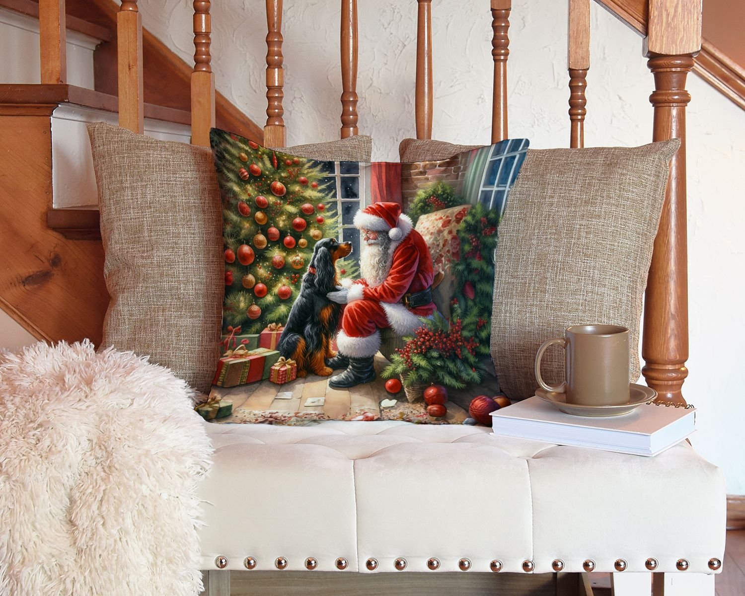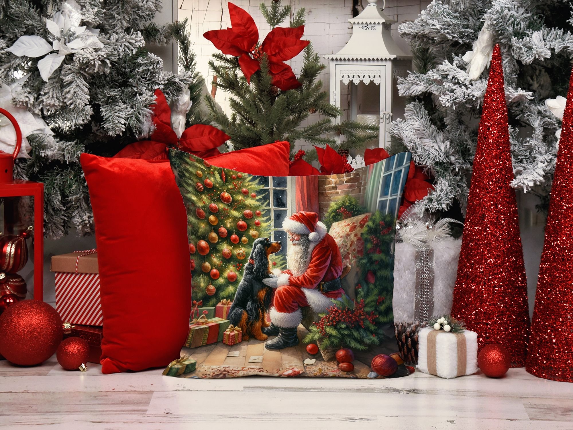 Gordon Setter and Santa Claus Throw Pillow Machine Washable, Indoor Outdoor Decorative Pillow for Couch, Bed or Patio, 14Hx14W