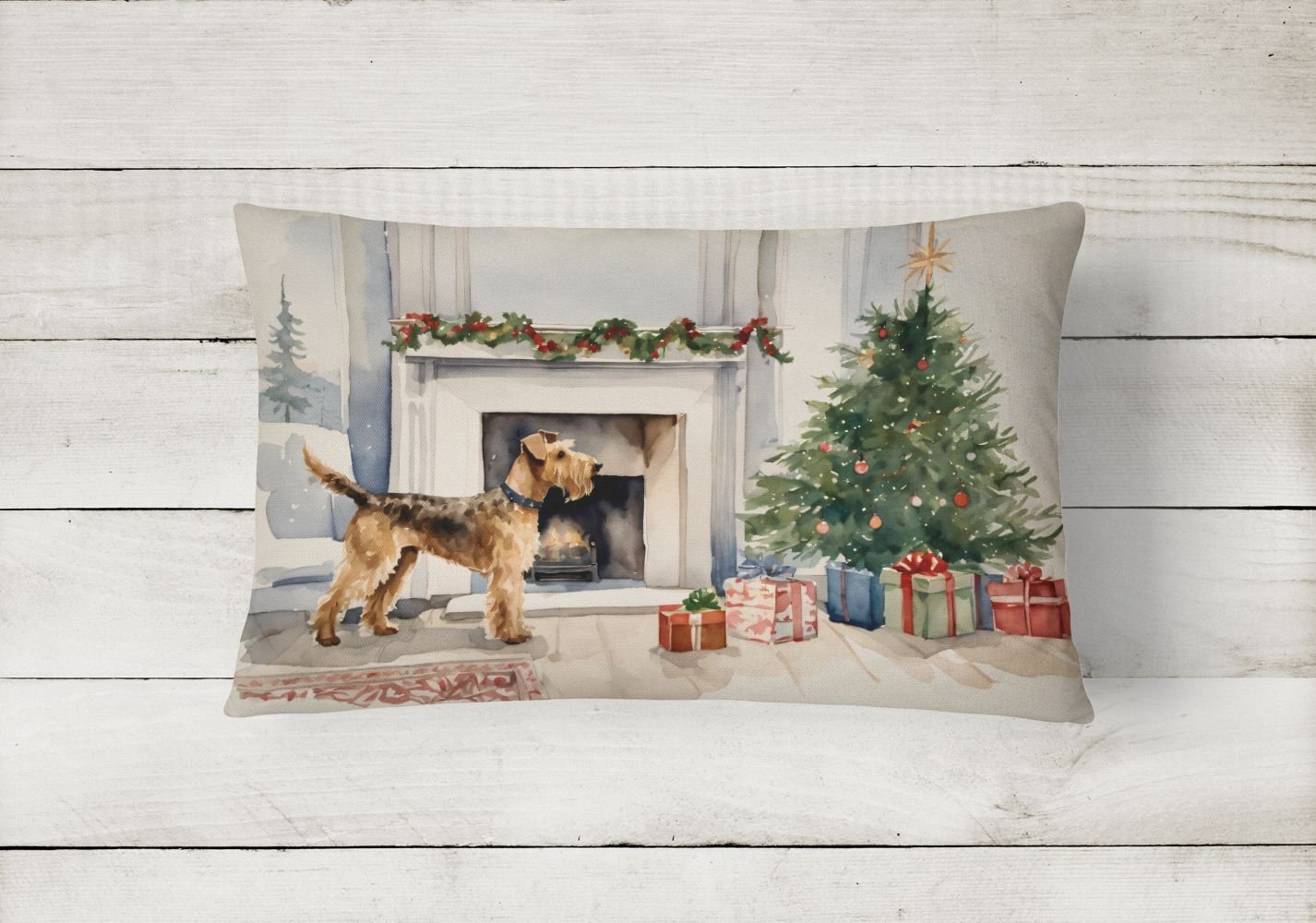 Throw Pillow featuring breed specific Airedale Terrier artwork. Celebrate Christmas with this Christmas Pillow. Embrace the fusion of comfort and style with Caroline's Treasures Fabric Decorative Pillow. This 12x16 inch outdoor pillow is designed to complement your patio furniture, adding a splash of color and artistry to your outdoor setting. Constructed with a 100% Polyester Fabric pillow sham filled with a plush pillow form, this cushion is as comfortable as it is durable. Our outdoor pillow utilizes a novel fabric, meticulously woven for enhanced water resistance. This soft canvas material is equally suited for your indoor couch as well as outdoor settings such as the patio, porch, or veranda. To ensure enduring vibrance, we employ colorfast dyes resistant to fading even when subjected to weather elements. The making of this pillow involves the delicate sewing together of three fabric pieces to create a sham, into which a polyester insert is carefully placed. The result is an overstuffed pillow that tenaciously holds its shape. With both the sham and the pillow insert crafted in the United States, these handmade pillows are a testament to superior local craftsmanship. Note that as these pillows are handmade, sizes may slightly vary, enhancing their unique appeal. Enjoy comfort in style with Caroline's Treasures Fabric Decorative Pillow.