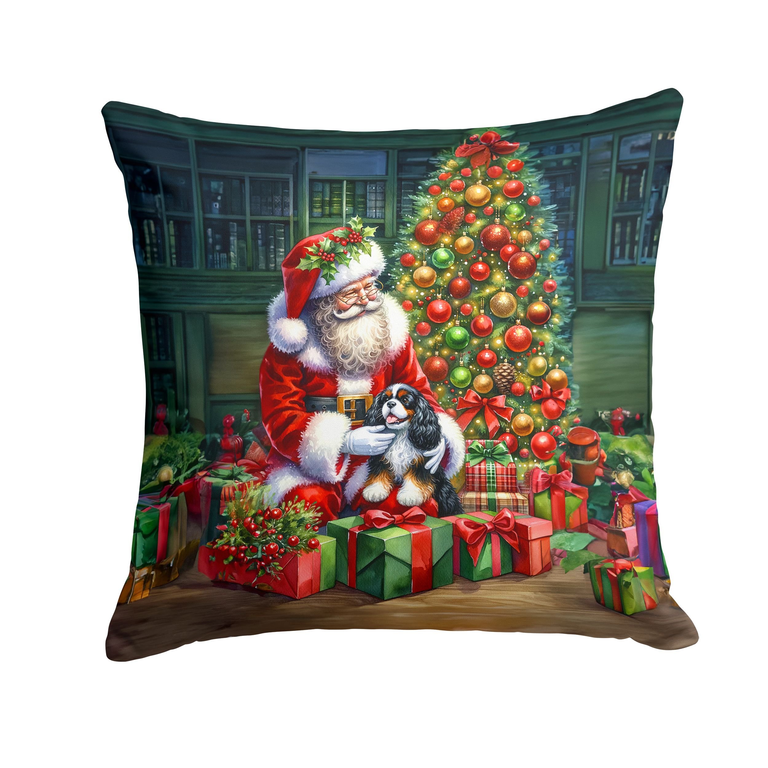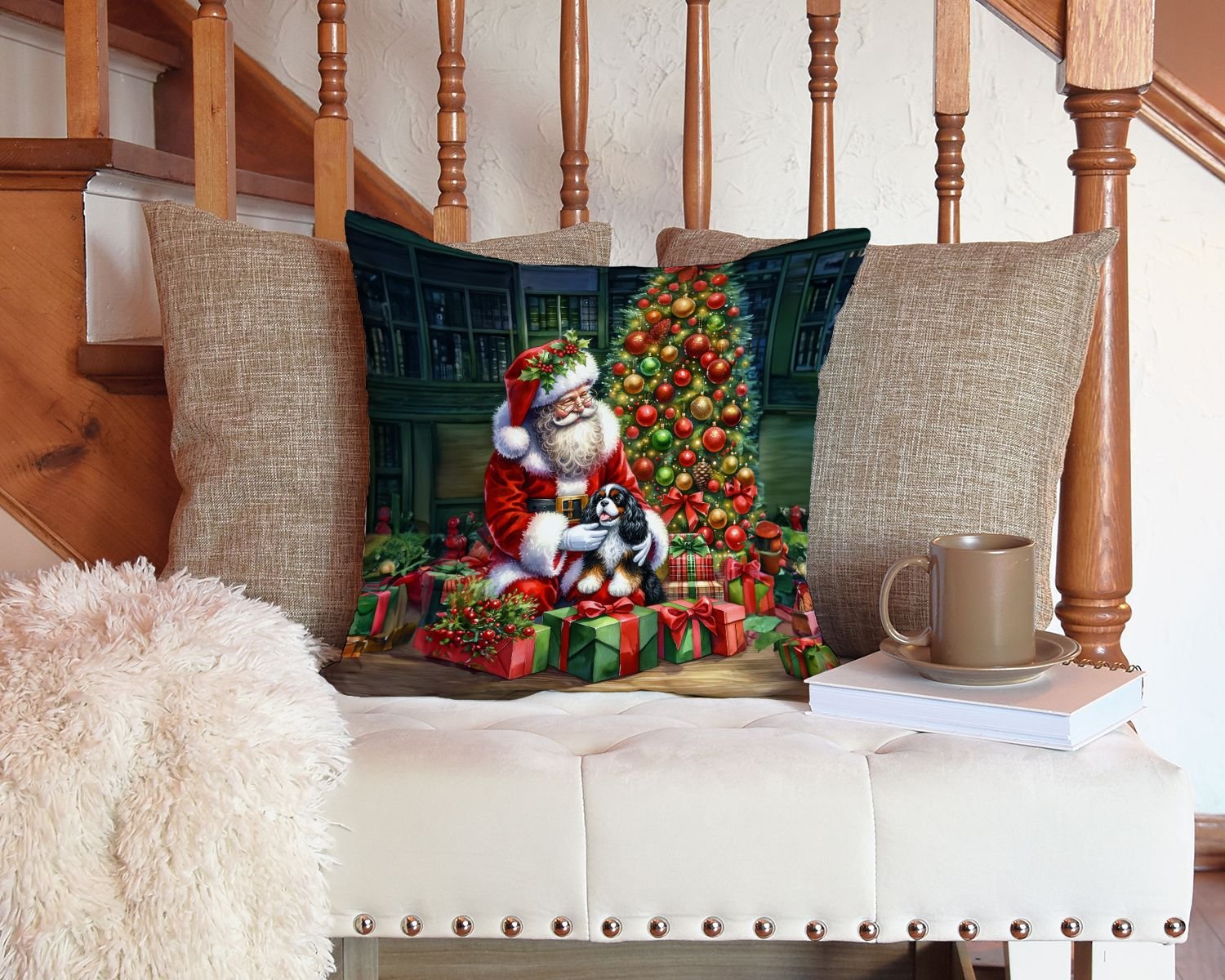 Home > Cavalier Spaniel and Santa Claus Throw Pillow Machine Washable, Indoor Outdoor Decorative Pillow for Couch, Bed or Patio, 14Hx14W
