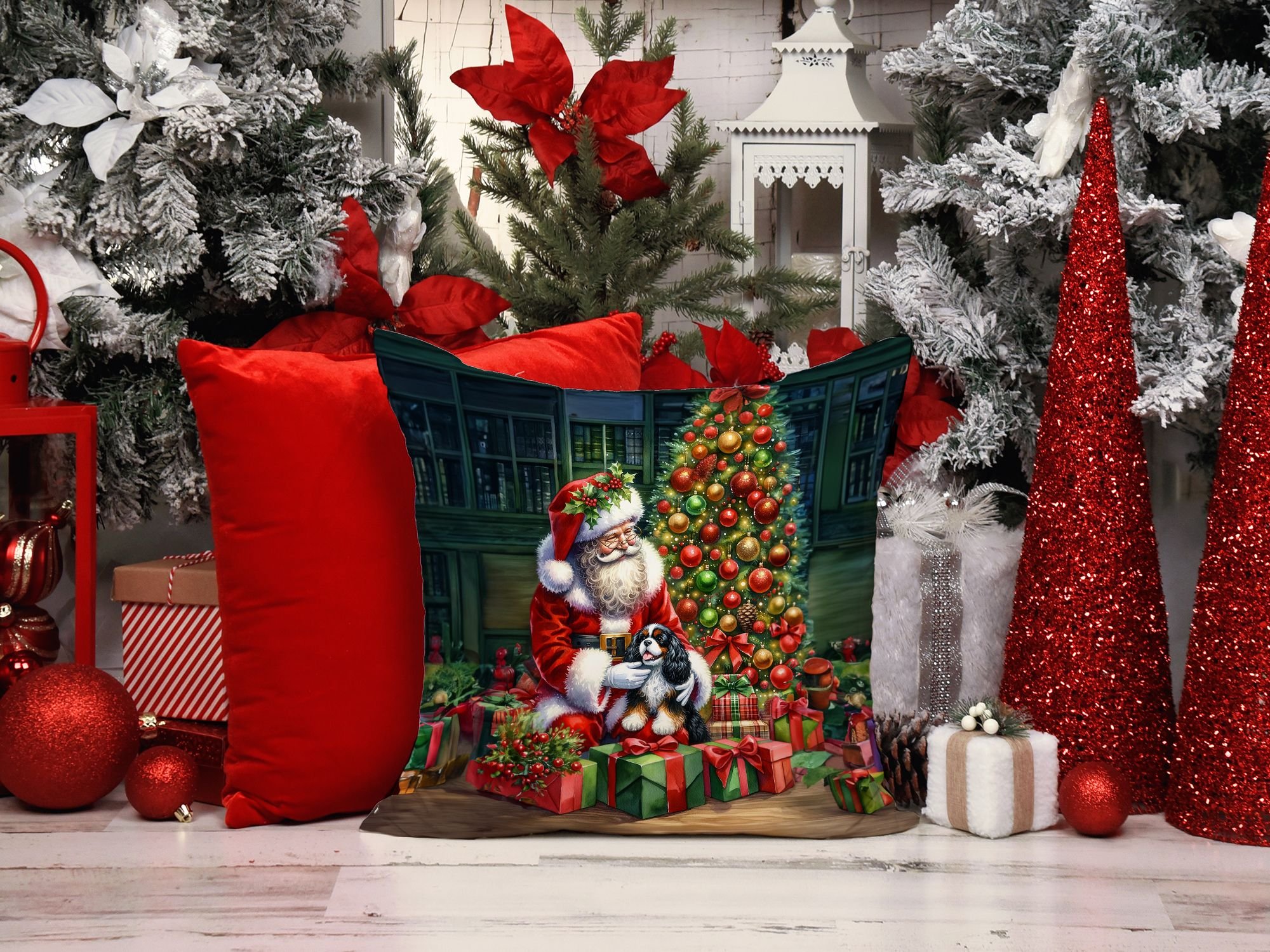 Cavalier Spaniel and Santa Claus Throw Pillow Machine Washable, Indoor Outdoor Decorative Pillow for Couch, Bed or Patio, 14Hx14W