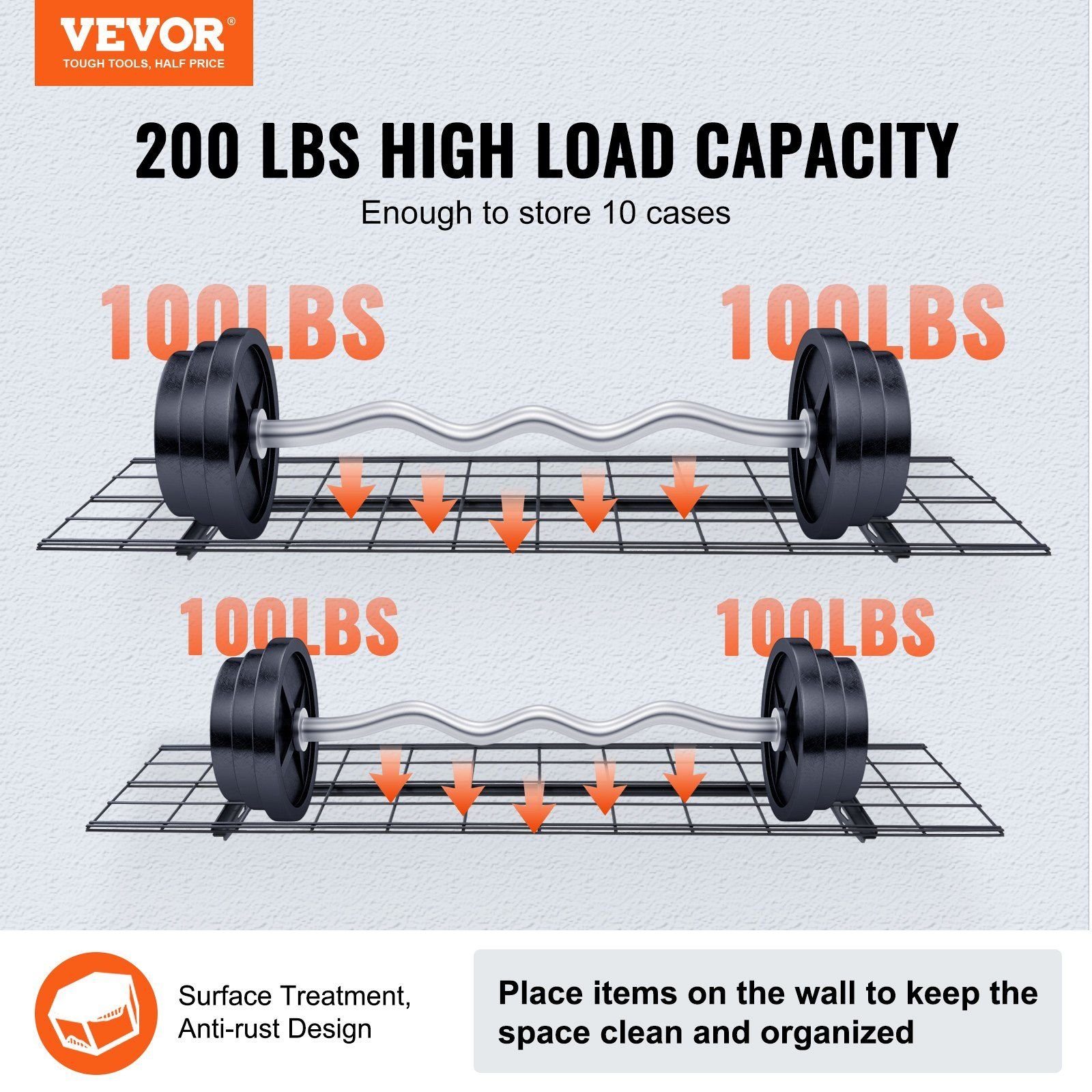VEVOR garage wall shelving is made of metal and can hold up to 200 lbs per layer to ensure your items don't slip off. It features multiple accessories, such as hooks and cable ties, to make your garage organization easier, providing you with a perfect storage solution!