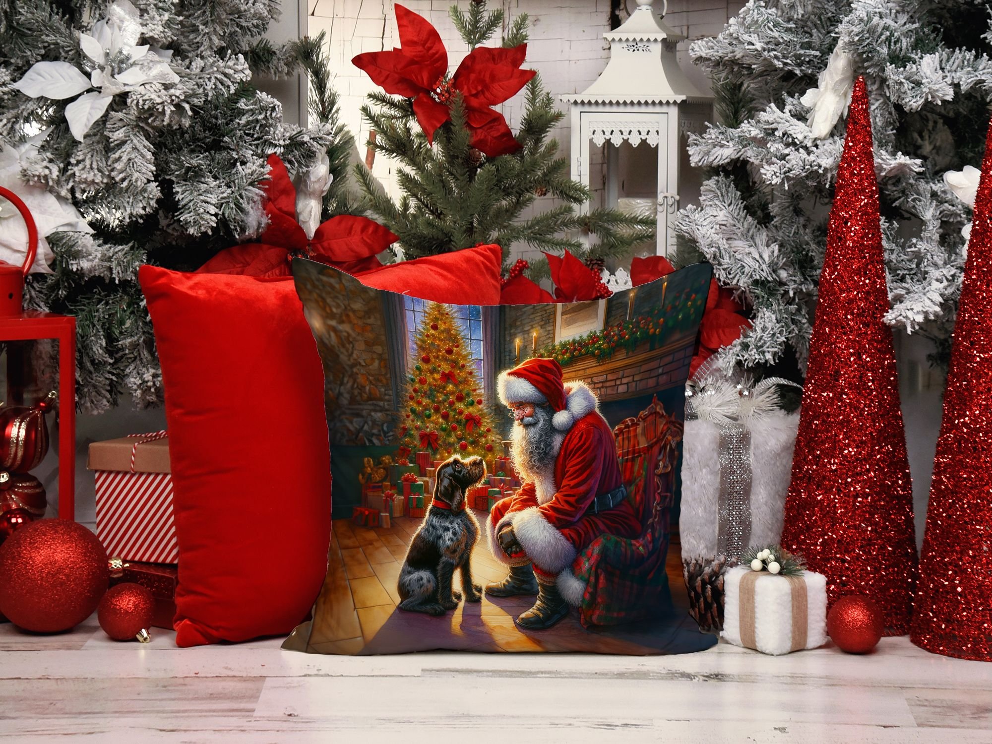 German Wirehaired Pointer and Santa Claus Throw Pillow Machine Washable, Indoor Outdoor Decorative Pillow for Couch, Bed or Patio, 14Hx14W German Wirehaired Pointer and Santa Claus Throw Pillow Machine Washable, Indoor Outdoor Decorative Pillow for Couch, Bed or Patio, 14Hx14W German Wirehaired Pointer and Santa Claus Throw Pillow Machine Washable, Indoor Outdoor Decorative Pillow for Couch, Bed or Patio, 14Hx14W