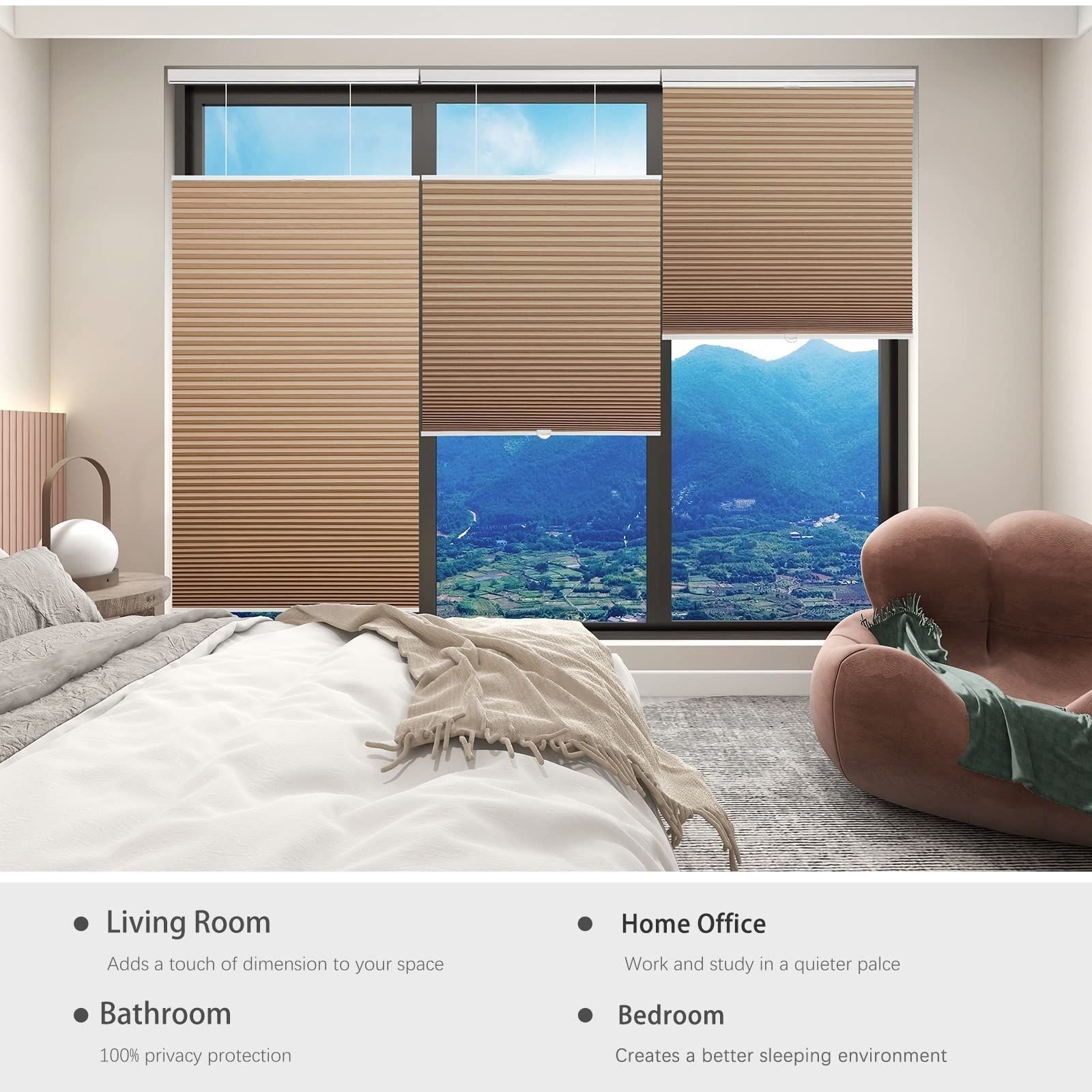 1.WELLSOURCE Blackout Cellular Shades Cordless, Top Down Bottom Up Blinds for Windows, 1.5" Single Cell Pleated Honeycomb Window Shades for Bedroom, Child Room