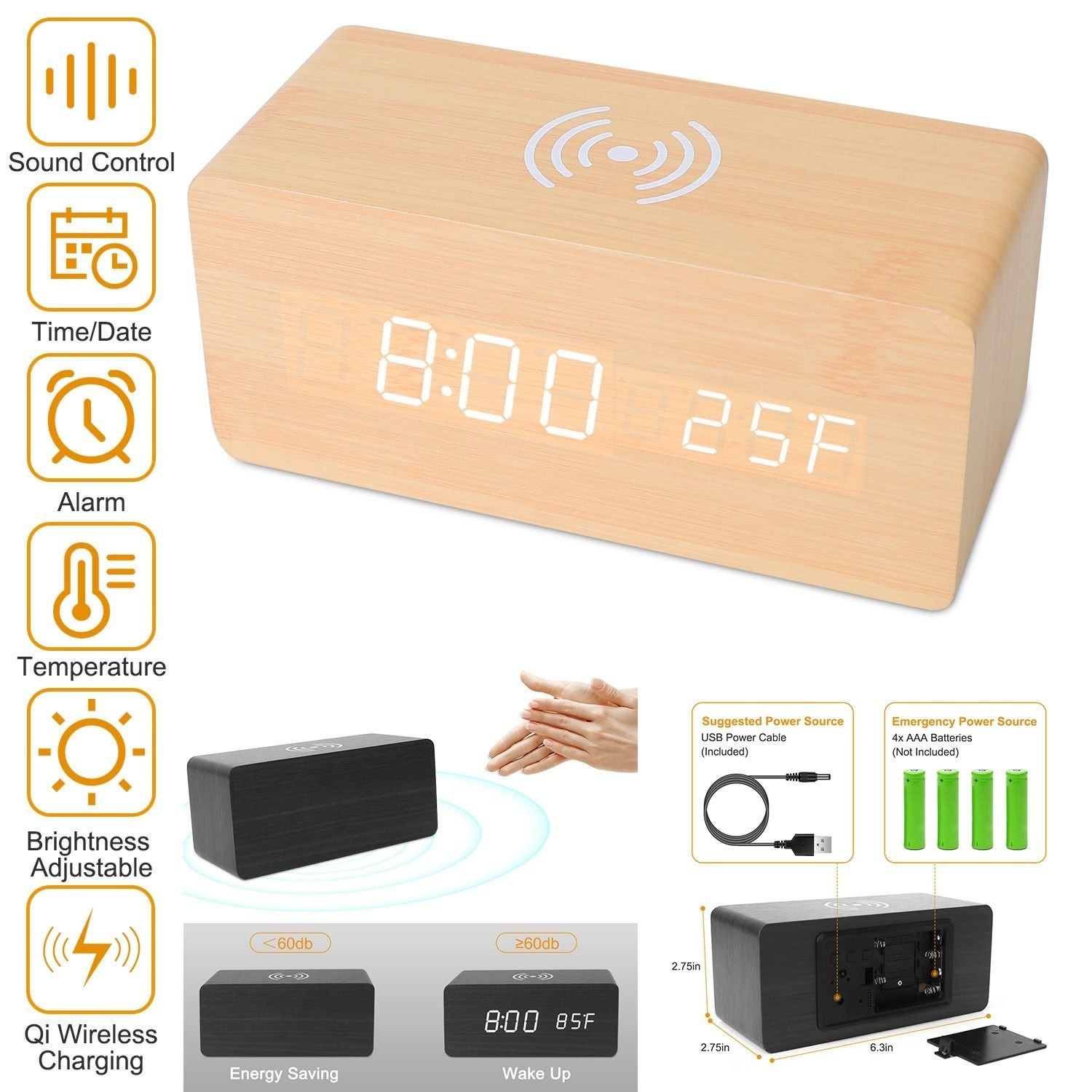 Digital Alarm Clock Qi-Wireless Charger Time Temperature Calendar Display Clock w/ Voice Control Brightness Adjustment Digital Alarm Clock Qi-Wireless Charger Time Temperature Calendar Display Clock w/ Voice Control Brightness Adjustment Digital Alarm Clock Qi-Wireless Charger Time Temperature Calendar Display Clock w/ Voice Control Brightness Adjustment