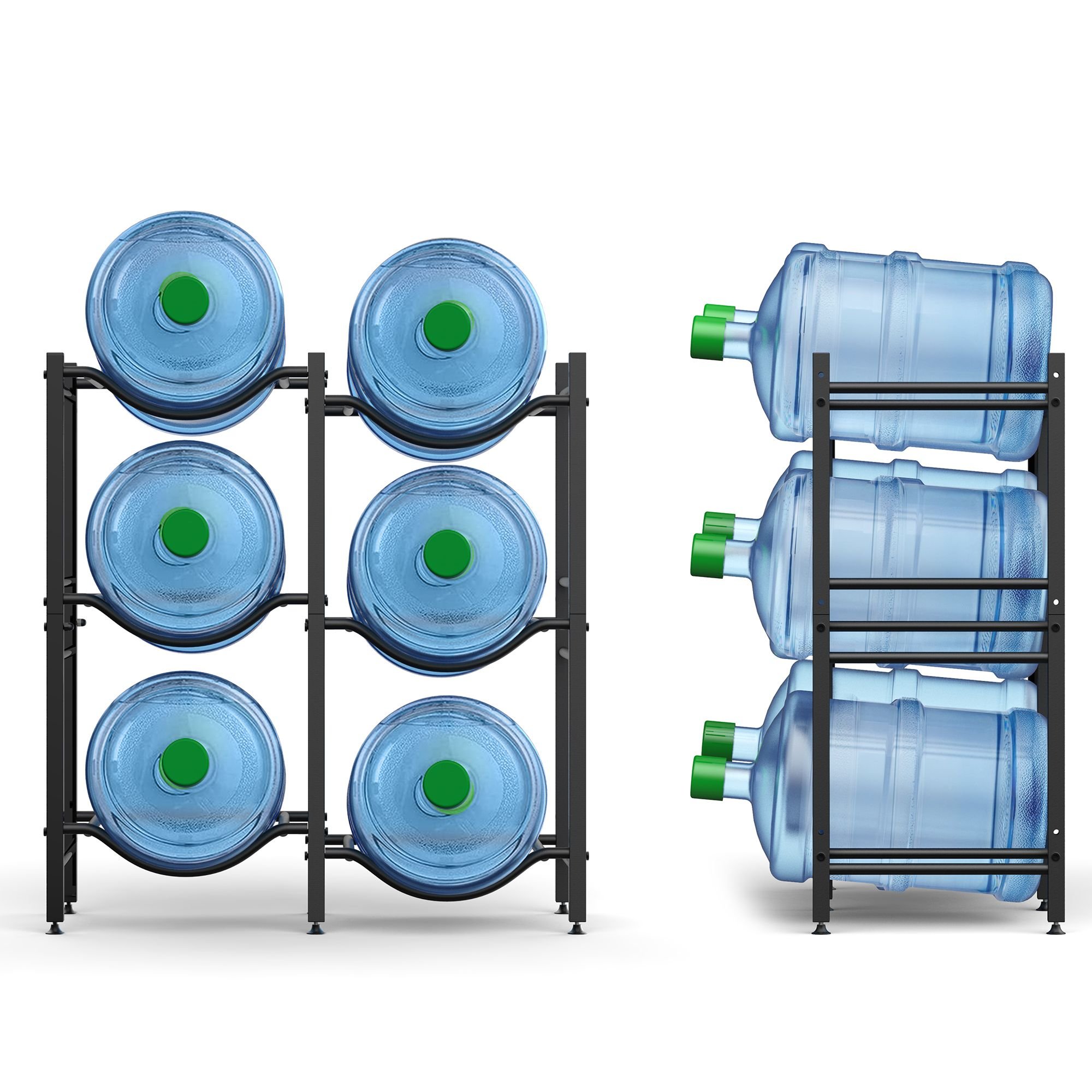 2.Space-Saving Design: Capable of storing 3-6 five-gallon water jugs, this rack helps maximize space in your home, kitchen, or office, keeping your environment neat and organized.